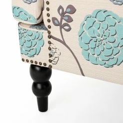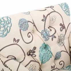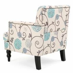 Liven up your transitional seating area with the Harrison Floral Tufted Club Chair with Nailhead Trim. Flaunting a contemporary floral print, the polyester upholstery makes a bold, cheerful statement. Turned birch wood feet, button-tufted cushions, and bronze nailhead trim add a touch of old-world influence.