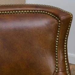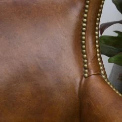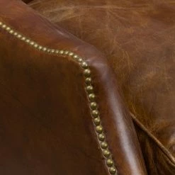 The Kraig Arm Chair will bring your home a sense of sophisticated style. This soft and luxurious leather chair has a warm brown color. Nailhead trim surrounds the borders for added texture and a rustic look. The thick padded seat and integrated arms create a comfy space to sit and relax whenever you please, and study wood legs add incredible support.