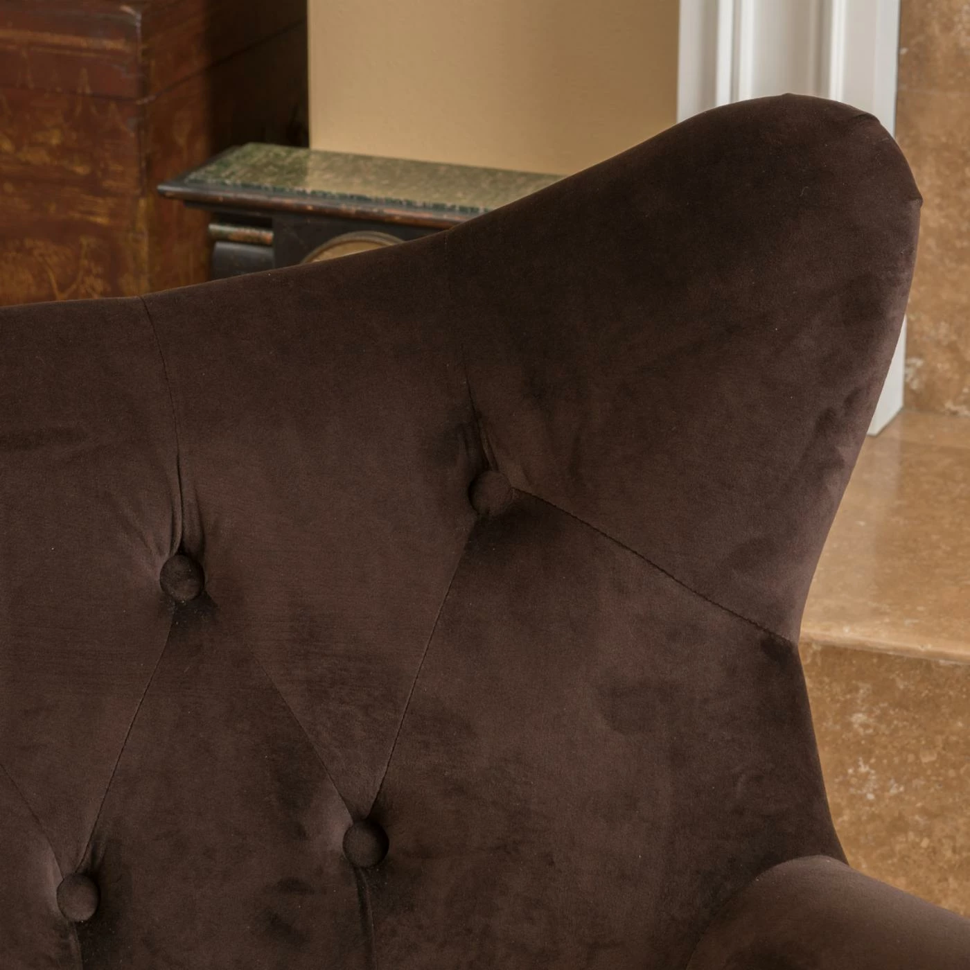 - Tufted cotton and velvet upholstery