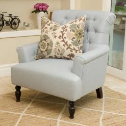 The Shauna Tufted Club Chair is enriched with a tall back and an abundance of tufting that contributes to its graceful style. This soft and comfy club chair comes in your choice of available color to help you create a customized look for your living space. Sturdy carved wood legs add a bold look and enhanced support to its frame.