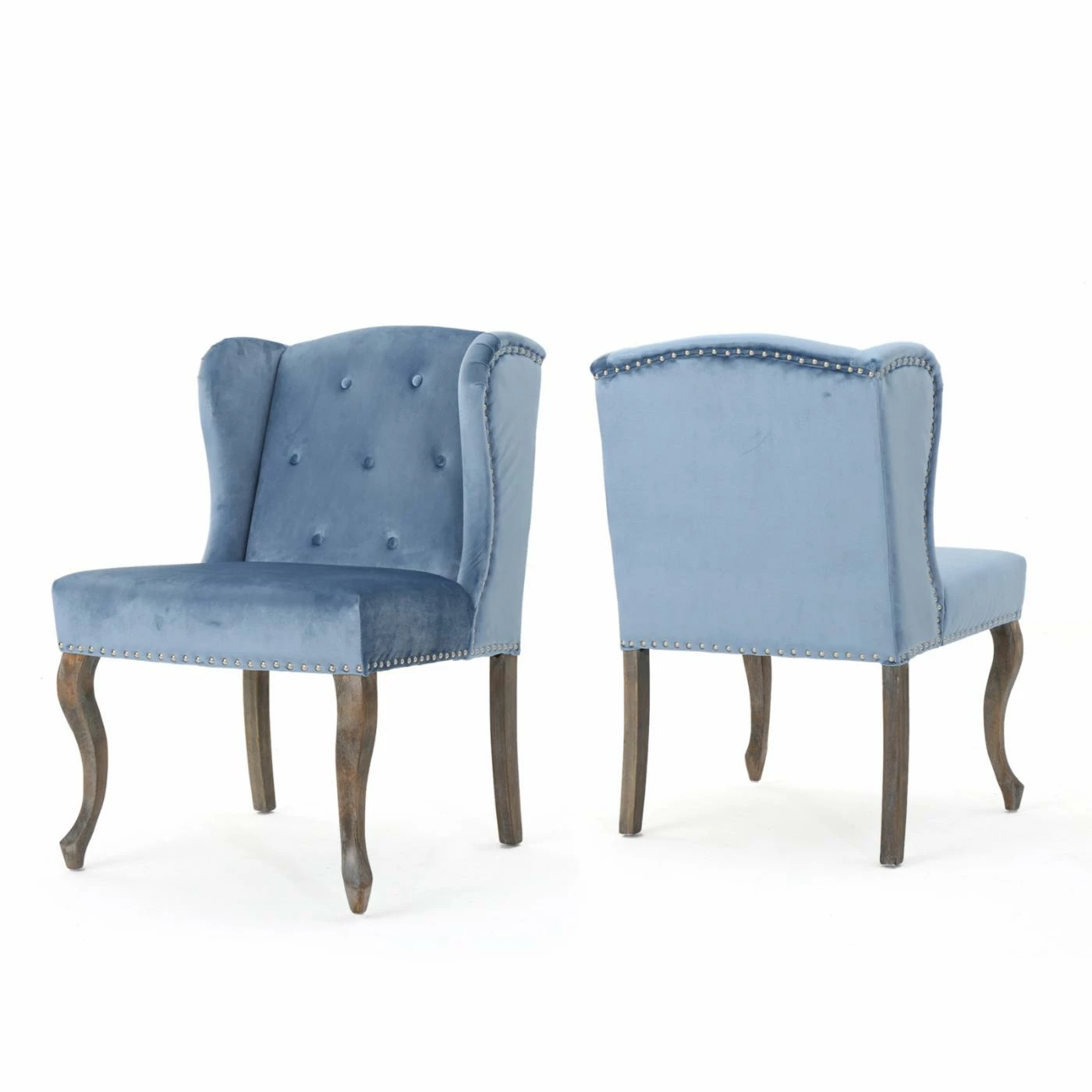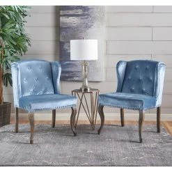 Style and luxury comes to your home with the Greek Velvet Chair. These club chairs are sold either individually or as a set of two and are offered in a choice of available colors. Featuring a soft velvet upholstery with button-tufted detailing and nailhead trim, these chairs are sure to add a refined element to any space. An ergonomic wingback design and plush cushions provide premium comfort, while the sturdy rubberwood legs feature a curved shape inspired by traditional aesthetic. Add these chairs to your lounge or living room for a superb seating solution that’s sure to upgrade your dรฉcor.