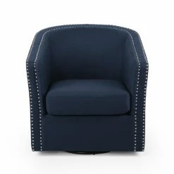 Settle into the comfort of your living room with the precise style and streamlined design of the Maya Contemporary Swivel Barrel Accent Chair. Featuring a crisp contemporary vibe that includes a stunning double nailhead trim and convenient swivel function, our tub chair offers your decor an impressive upgrade that will surely have all your guests talking. Whether you are looking for a place to settle down with a good book or just need a place to curl up and relax, this chair brings you the best in comfort and design for you to enjoy.