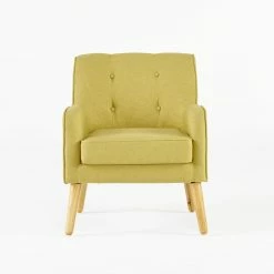 This Felicity Mid-Century Modern Tufted Arm Chair is a great addition to any home. Featuring strong lines and a tufted back, it will match any dΓ©cor you currently have. The cushion is extra padded to ensure maximum comfort and the wooden legs are perfectly styled for the mid-century look. Enjoy this arm chair in your home today.