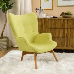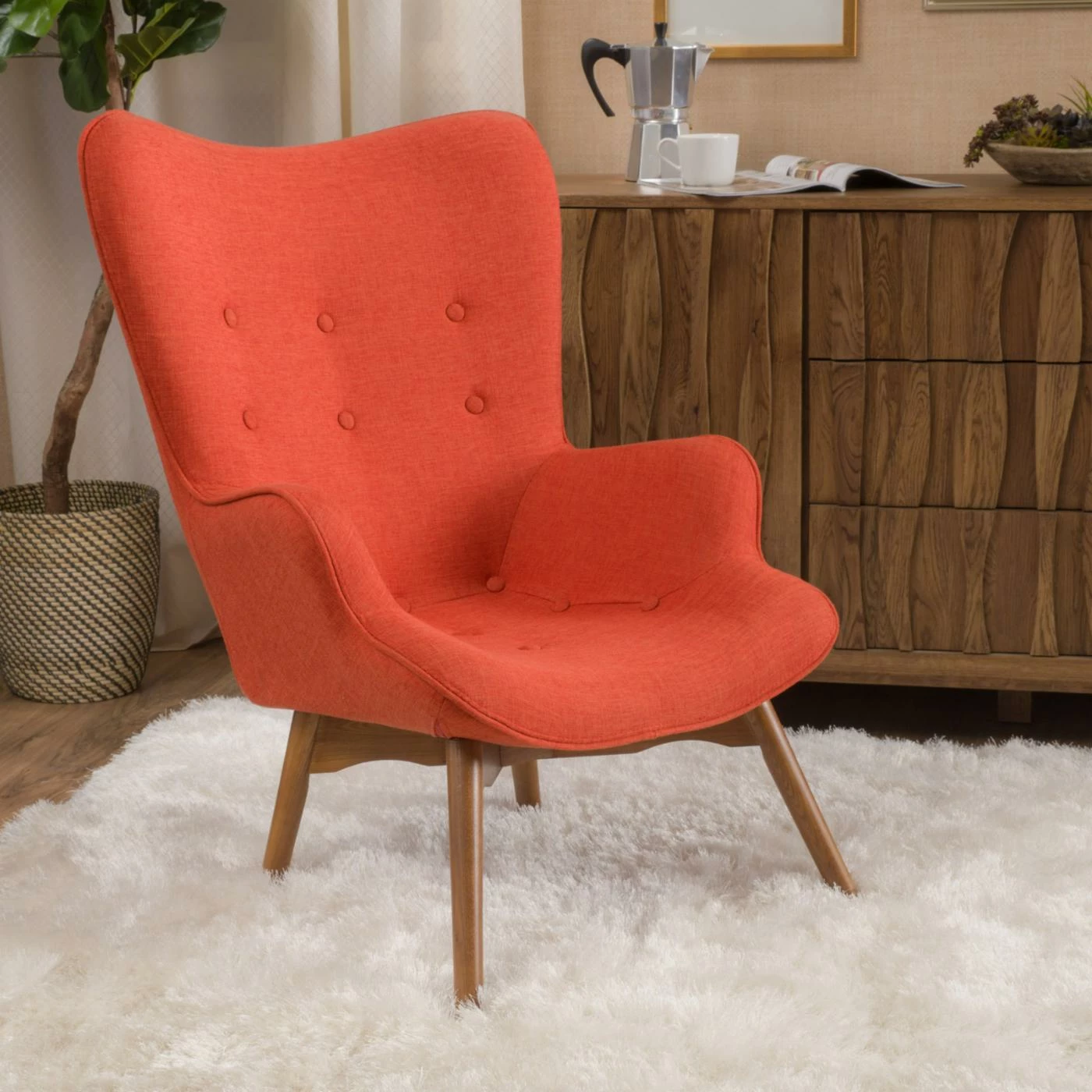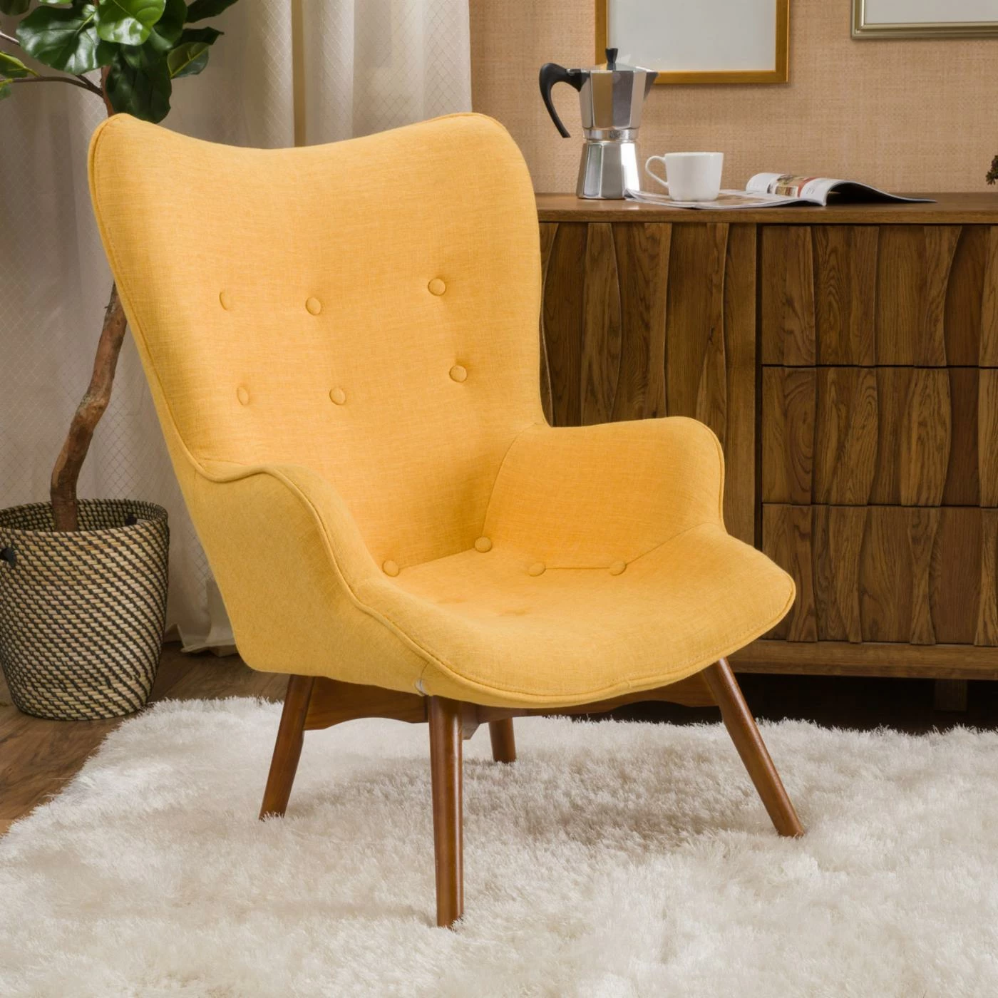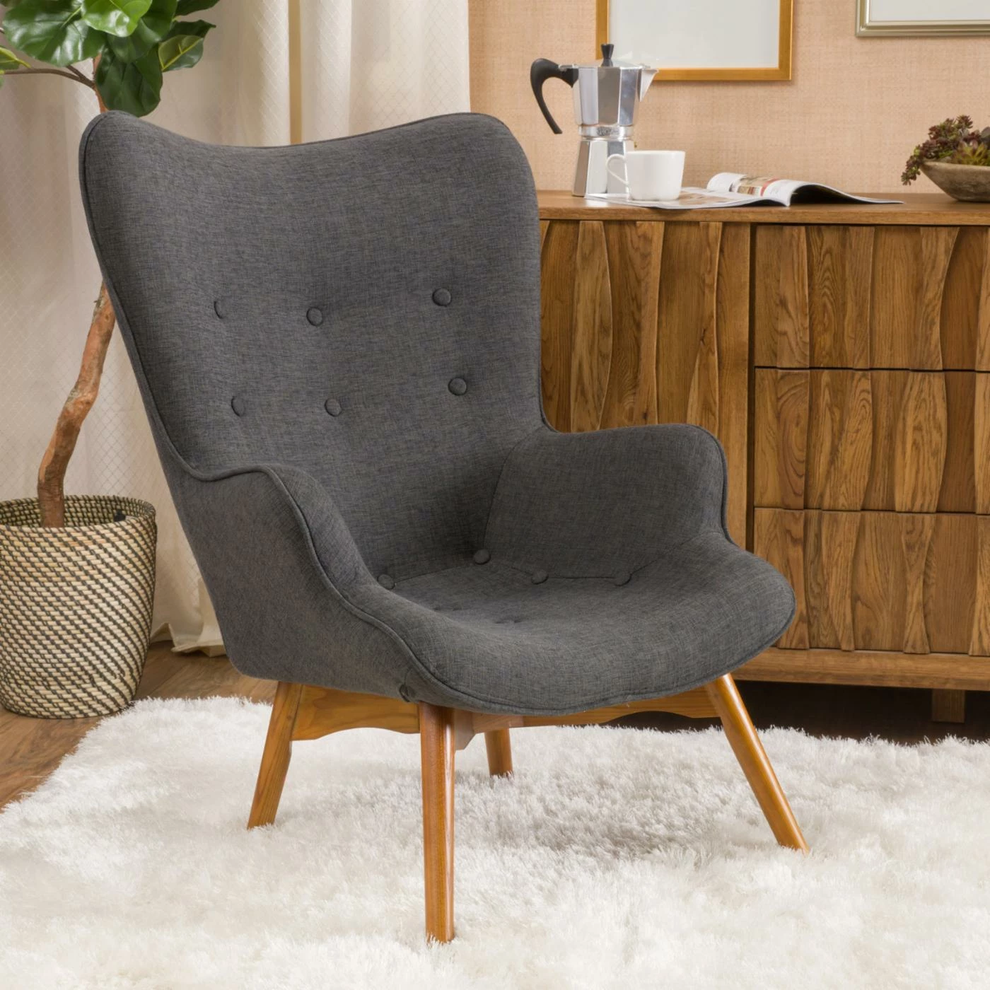 The Anders Mid-Century Accent Chair exudes the brilliance of mid-century design with a curvy bucket shape resting on tapered legs crafted of oak. This incredibly modern chair is enlivened by tufted upholstery and comes in your choice of select colors. The combination of warm wood and classic mid-century style makes this comfortable chair a real contemporary must-have for your home.