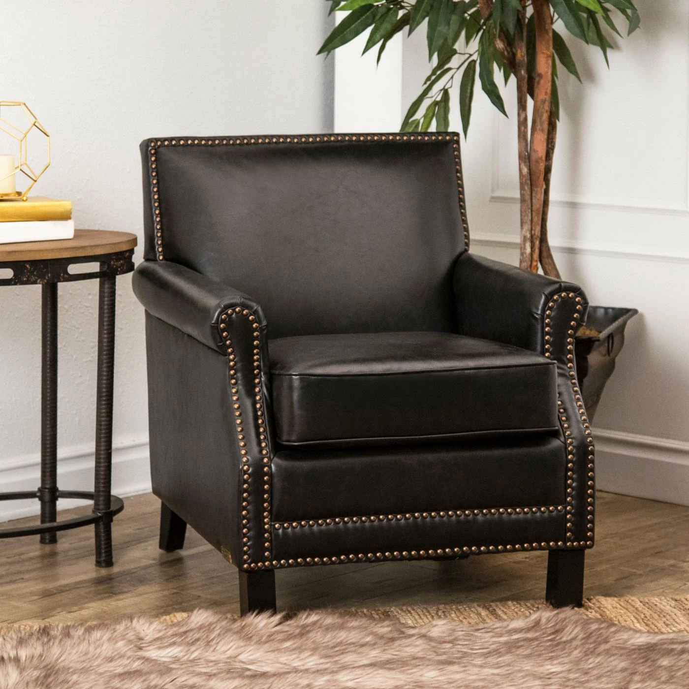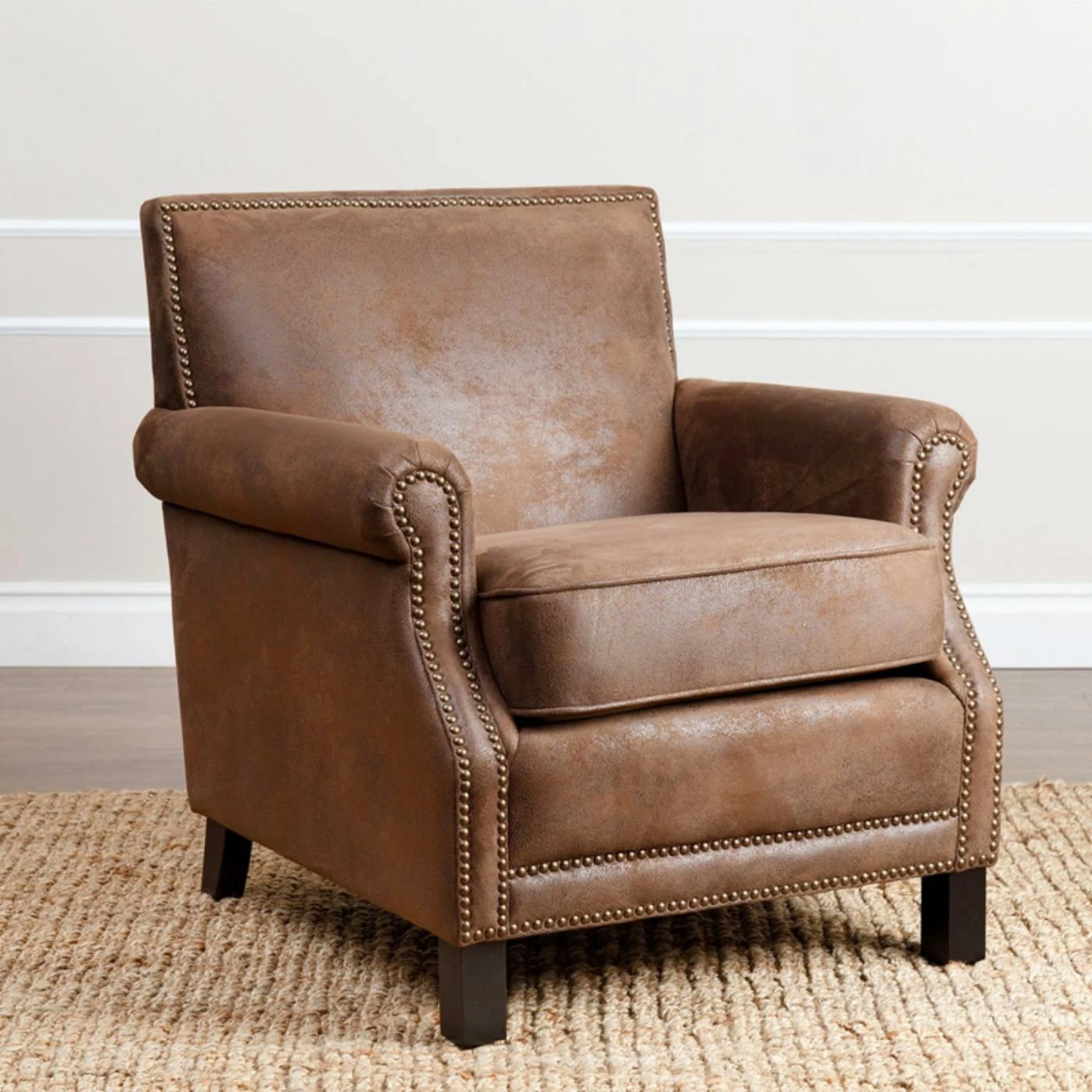 With a variety of options, the Abbyson Dixon Club Chair makes designing the perfect living room fun and easy. The classic profile and nailhead trim adds sophisticated style that goes with almost any decor. Available in your choice of color and fabric, you’ll have no trouble choosing the best design to fit your personal style. The strong and durable wood frame is made last while the solid birchwood legs in espresso adds the perfect finishing touch.