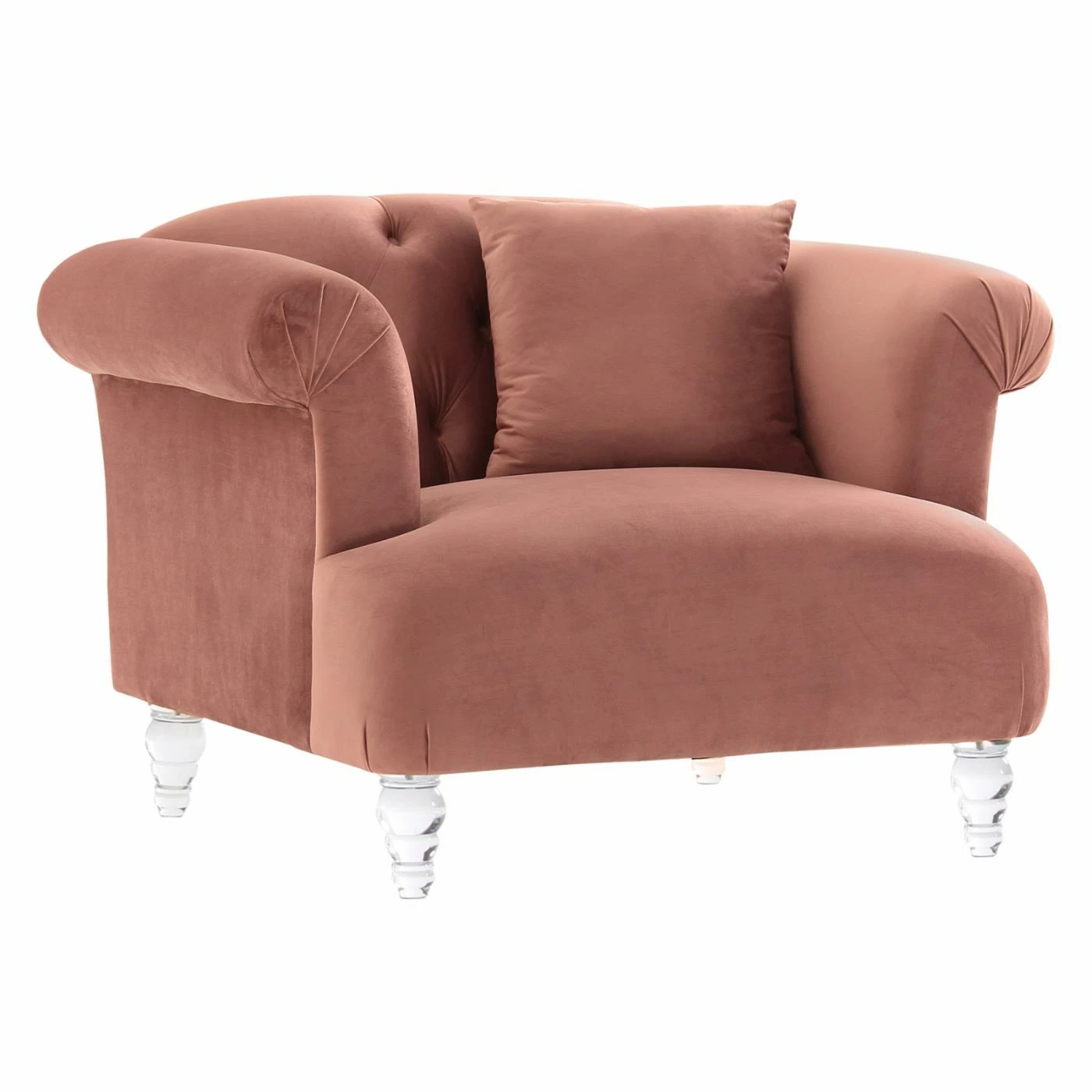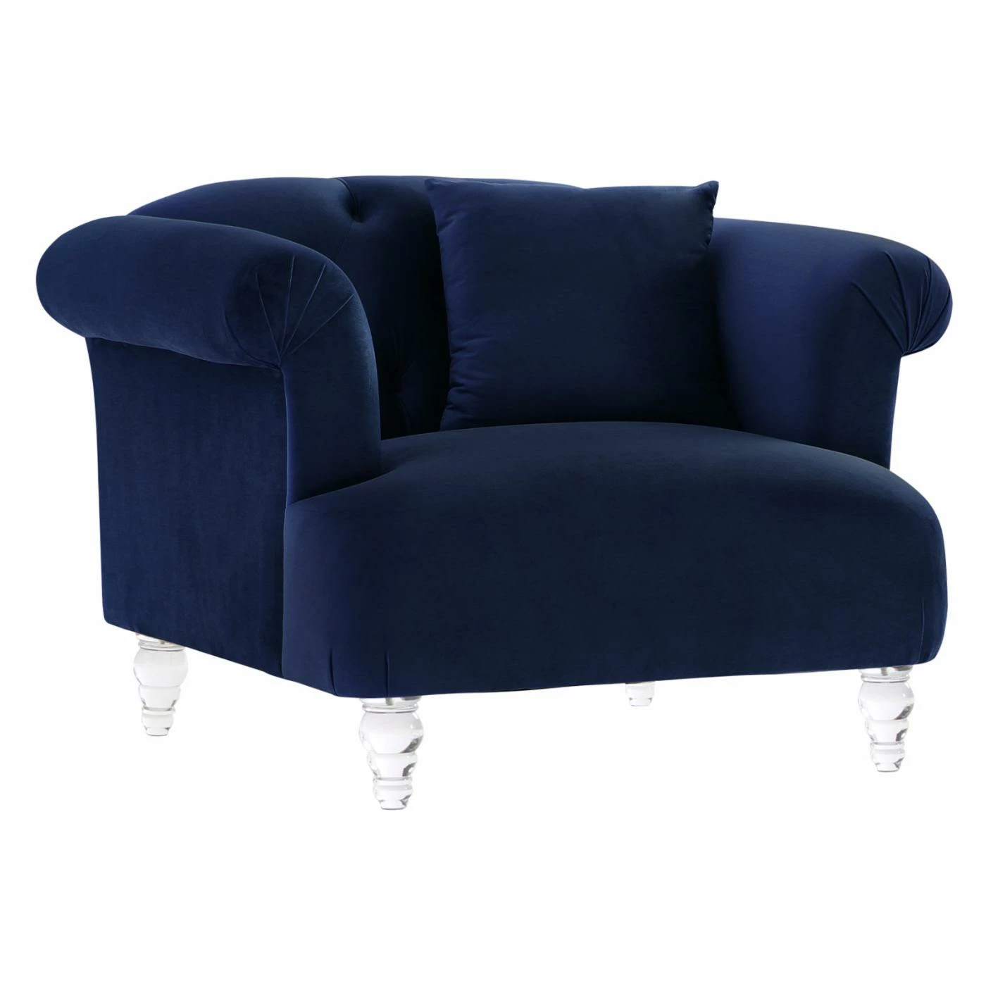 Designed for relaxation, the Armen Living Elegance Tufted Sofa Chair is a must-have for any contemporary home. Its velvet upholstery is soft and luxurious and complements any home. Clear acrylic legs blend modern and classic styles, giving you a sofa chair that suits nearly any home.
