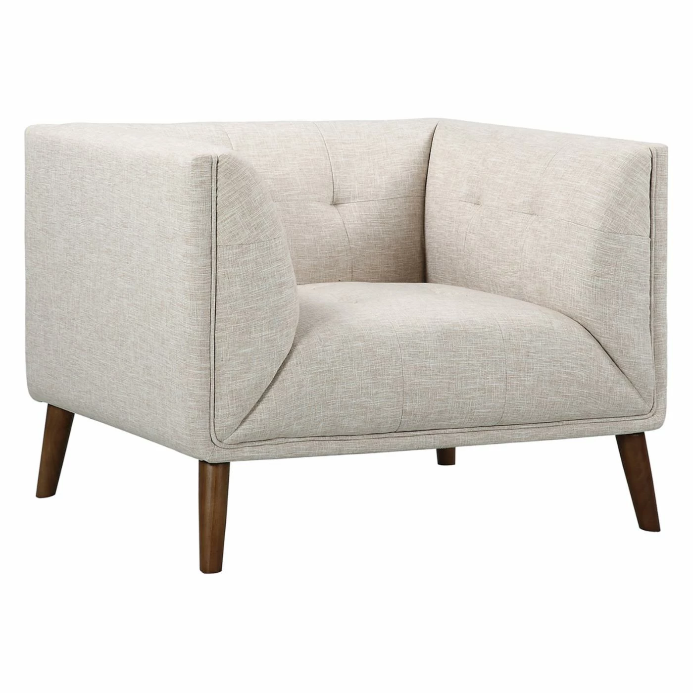 Settle yourself into the sleek, squared design of the Armen Living Hudson Club Chair. This sophisticated accent chair boasts clean lines and a beautifully tailored, compact profile that includes button-tufting and tapered walnut legs. The even arms and back, along with the seat, are thickly cushioned for the ultimate in comfort. Softly upholstered in your choice of available color fabric, this club chair instantly updates your space with a mid-century modern vibe. Pair this wood-frame piece with the other furniture in the Hudson collection for a look that’s coordinated and chic.