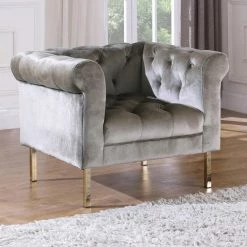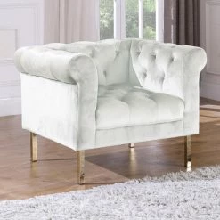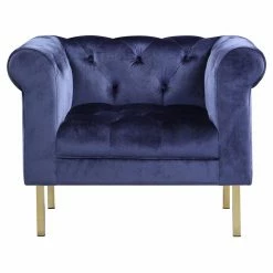 Complement your deco-inspired living room with the Chic Home Julian Velvet Club Chair for a sophisticated accent. This club chair has rolled arms and backrest at the same height and a deep seat cushion. The frame is wood and sits on block metal legs finished in polished gold. The foam-padded seat, arms, and back are upholstered in glamorous velvet. The interior of the chair is accented with diamond tufting. Choose from available fabric colors.