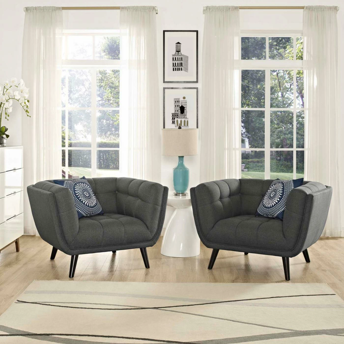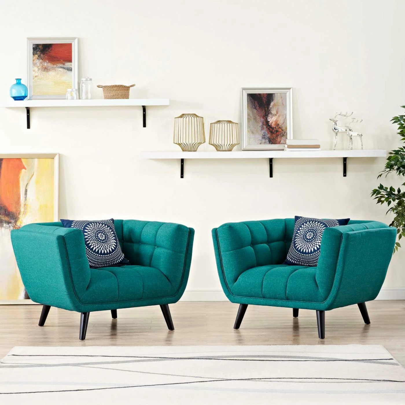 Sharply angled arms and dowel legs give the Modway Bestow Fabric Armchair – Set of 2 sleek, mid-century appeal. The two polyester-clad chairs are grid quilted and cushioned with high-density foam to ensure your comfort. Built out of solid rubberwood, the chair frames are durable enough to last through years of daily use.