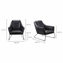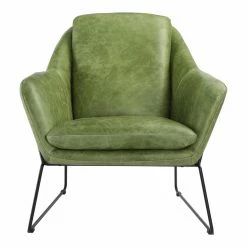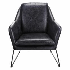 Lounge in style with theย Moes Home Collection Greer Club Chair. Its luxurious leather upholstery and fireproof foam offer a comfortable seat. The black iron sled-style base adds mid-mod appeal to this club chair. Choose from the available leather upholstery color options.