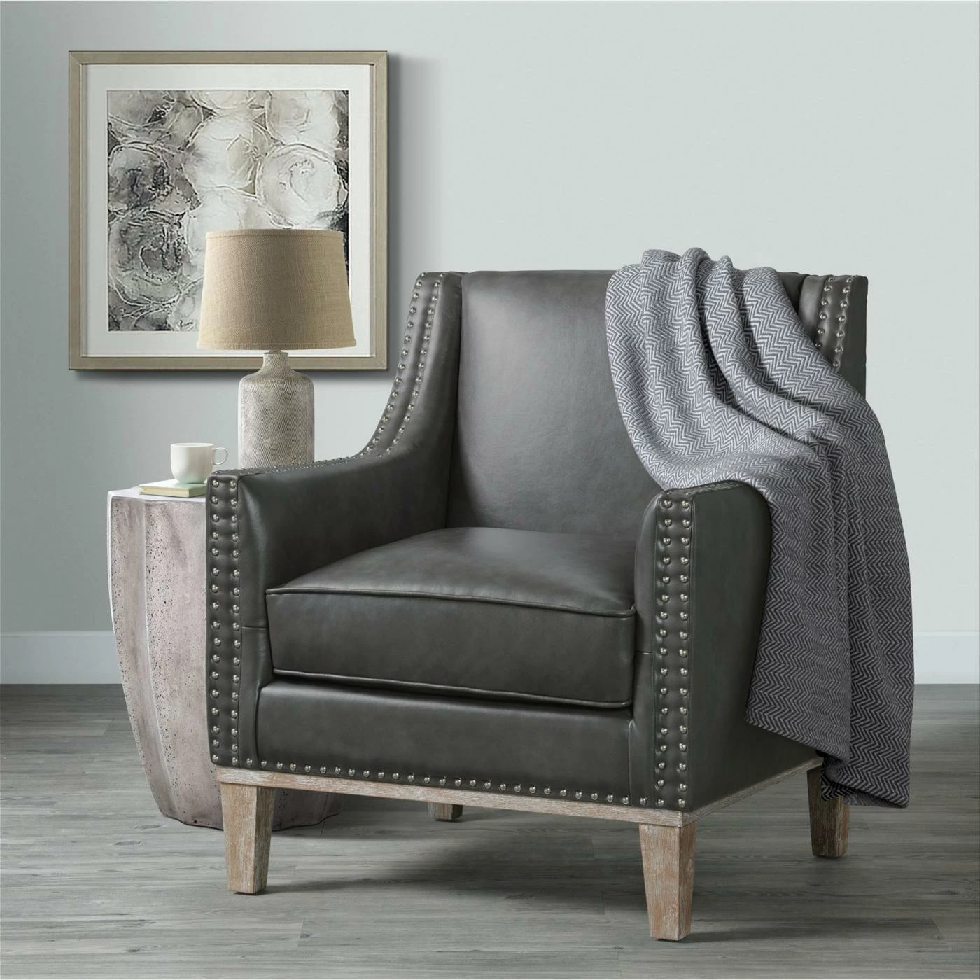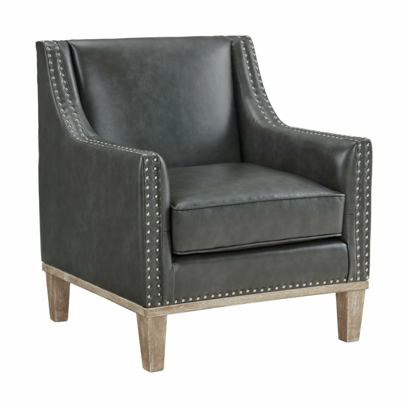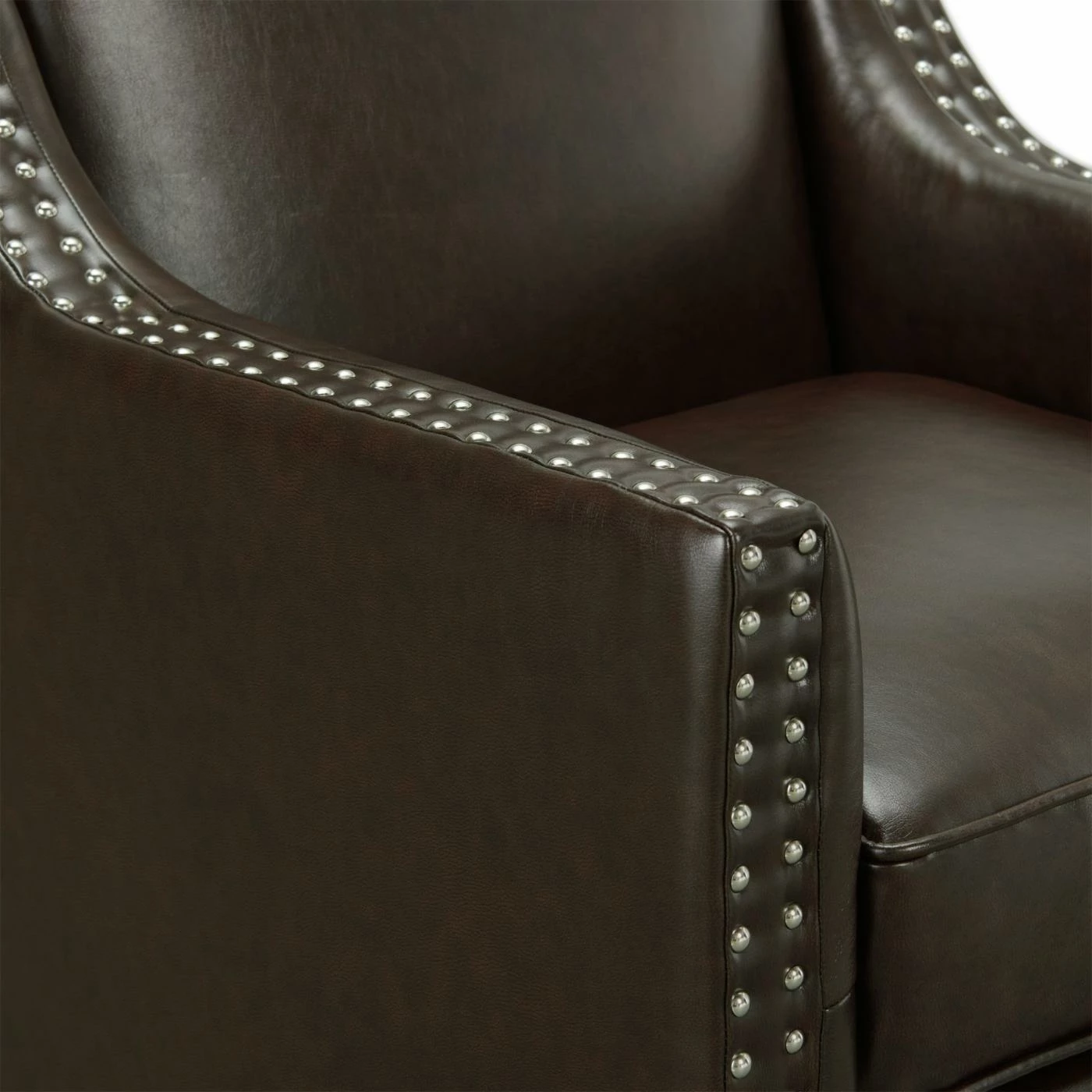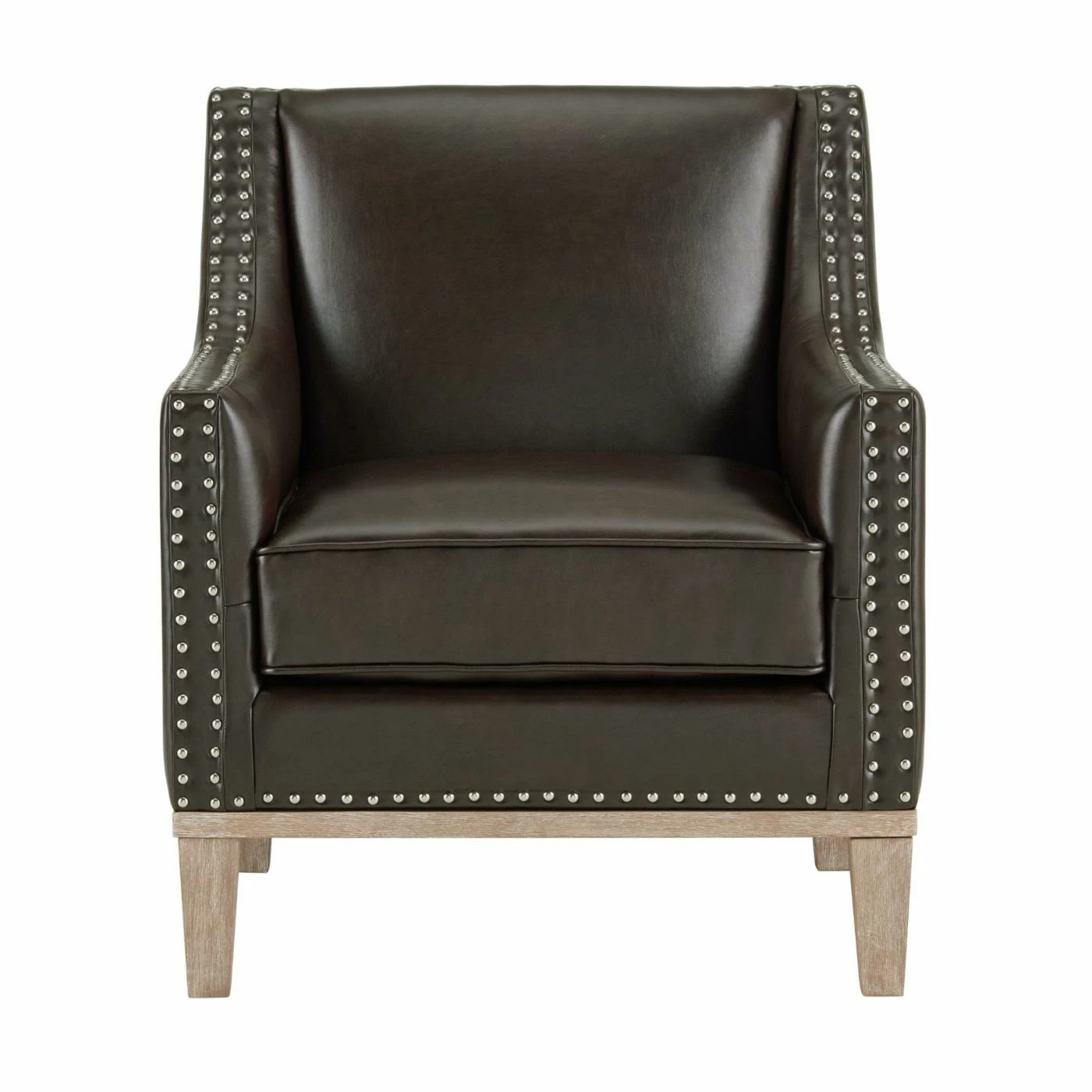 The Picket House Furnishings Aster Faux Leather Club Chair is the perfect addition to any room. Constructed of pine and plywood for years of use and upholstered in faux leather fabric. It showcases a square shape with nail-head trim along the curved arms. With foam filling, the Aster accent chair provides all-day comfort! Add this accent chair to your home for a modern touch to any aesthetic.