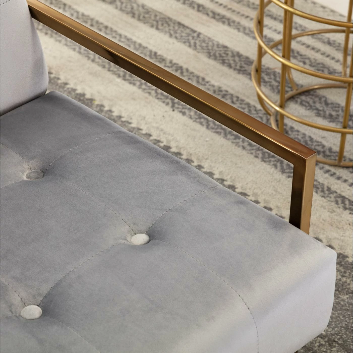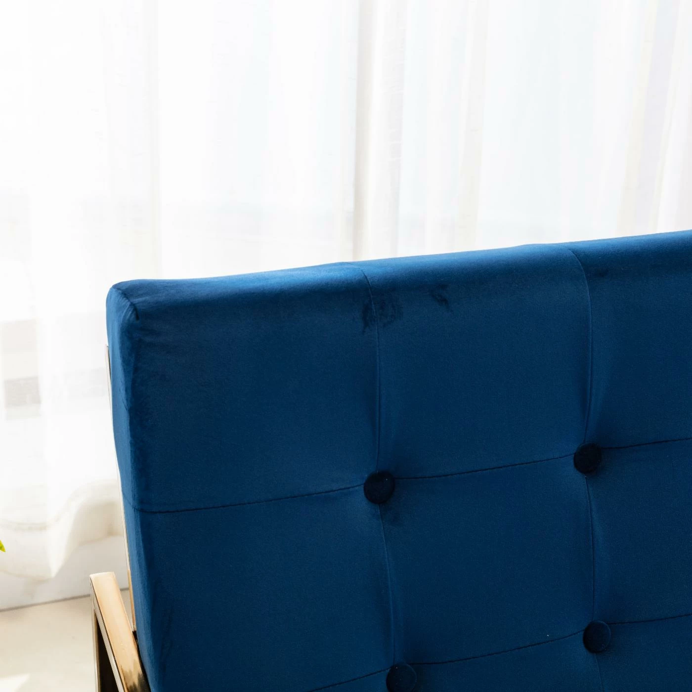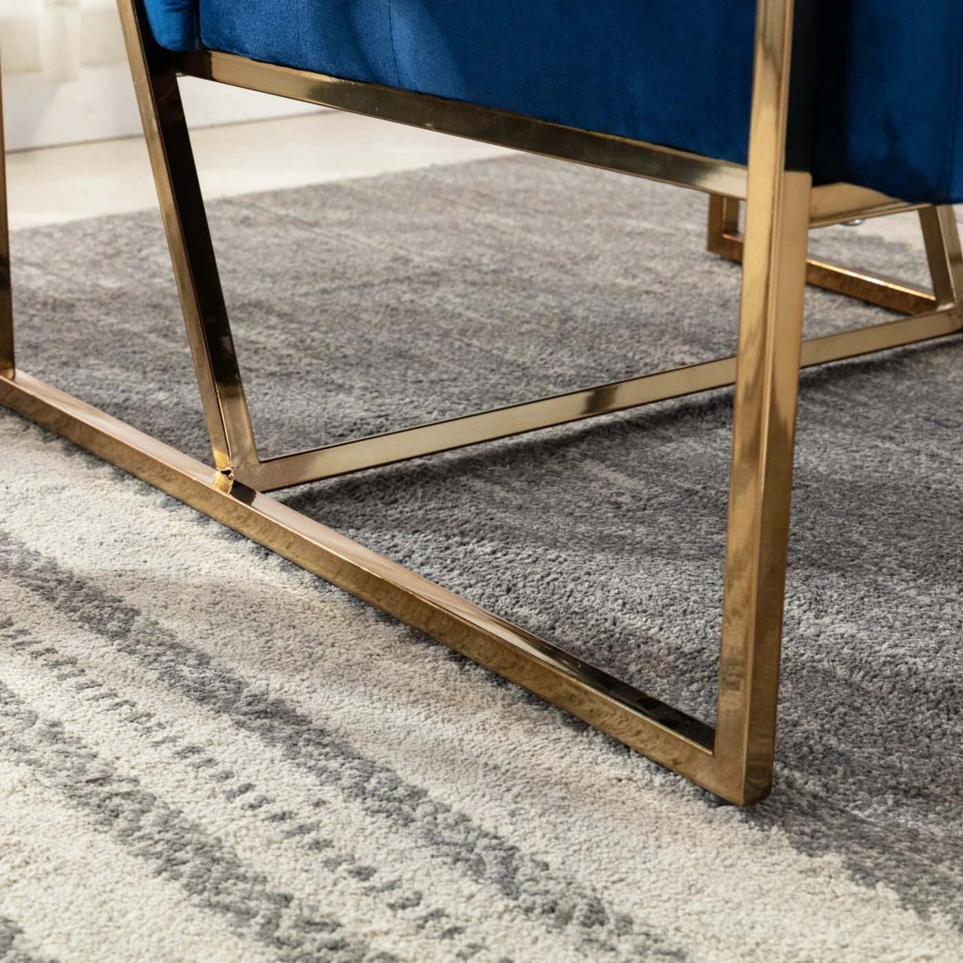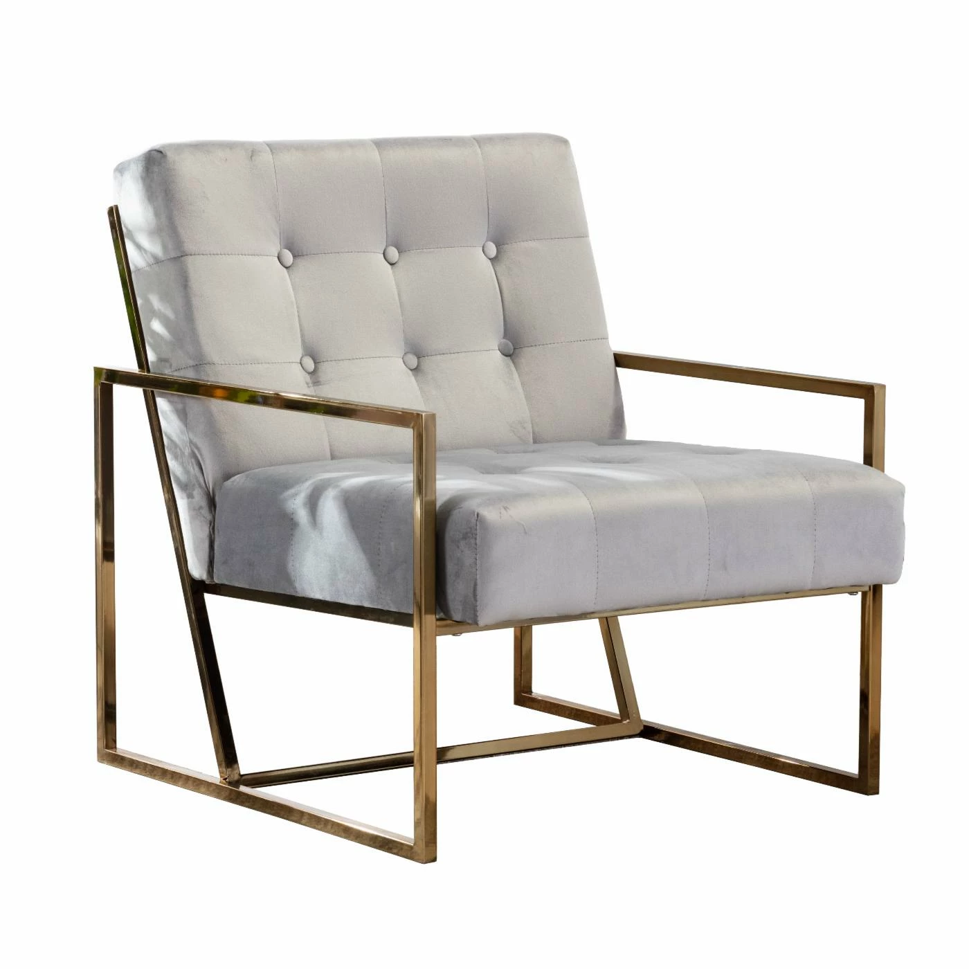Make your living room, lounge, or waiting room more comfortable with the Roundhill Furniture Ravia Velvet Tufted Accent Chair. This chair has a seat that’s both wide and deep, padded generously with thick foam. Elegant velvet upholsters the seat, deeply tufted with buttons in a diamond design. This chair is constructed with a sturdy metal frame in a golden finish for a chic modern look. Add this chair to the lounge, living room, or any space where relaxation and leisure are to be had. Select color options from the available.