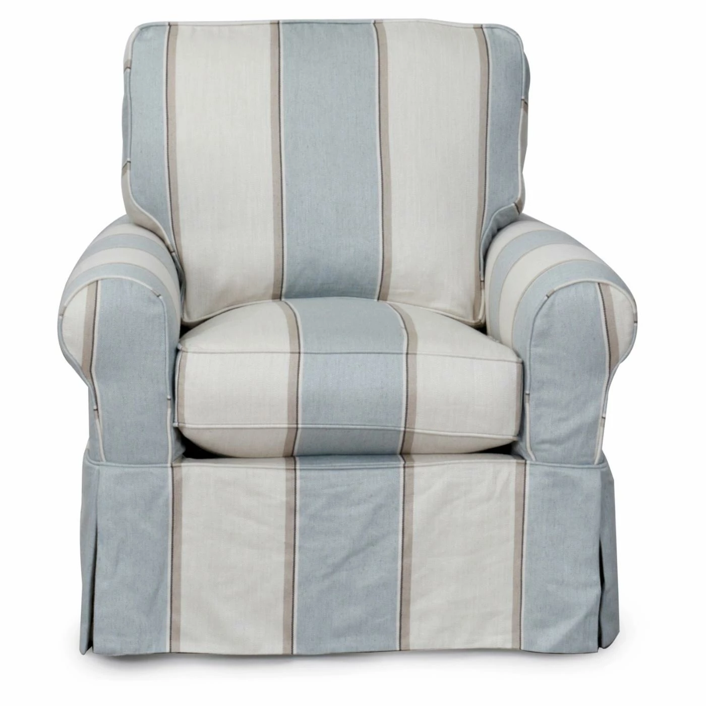 The smart and swiveling Sunset Trading Horizon Slipcovered Swivel Chair will be new your favorite lounging spot. This chair features a smooth swiveling mechanism that operates via ball bearings. Pretty style comes from it casual slipcover design, side pleated skirt, and rolled arms. The polyester blend upholstery is available in your choice of select color options.