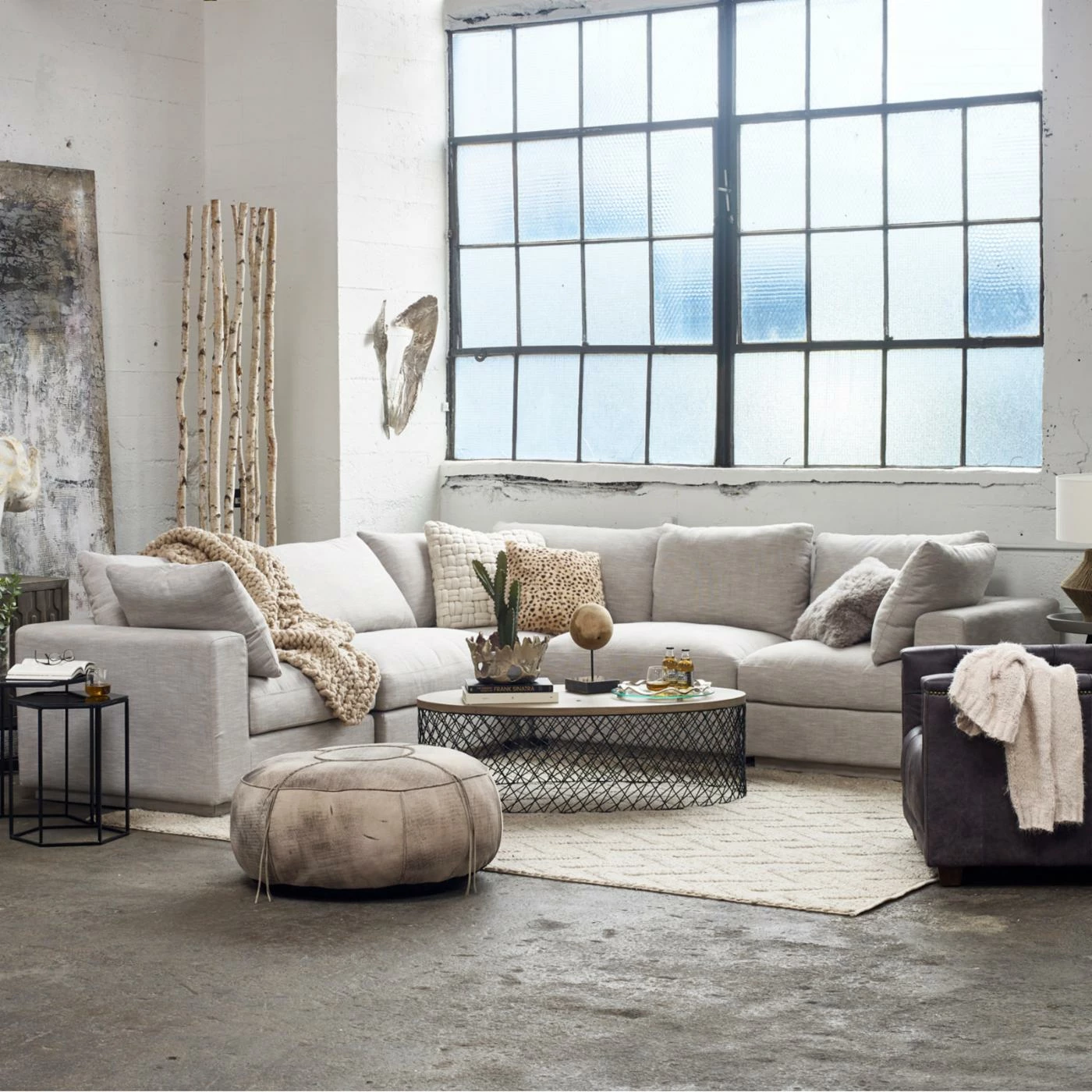 - Neutral taupe upholstery