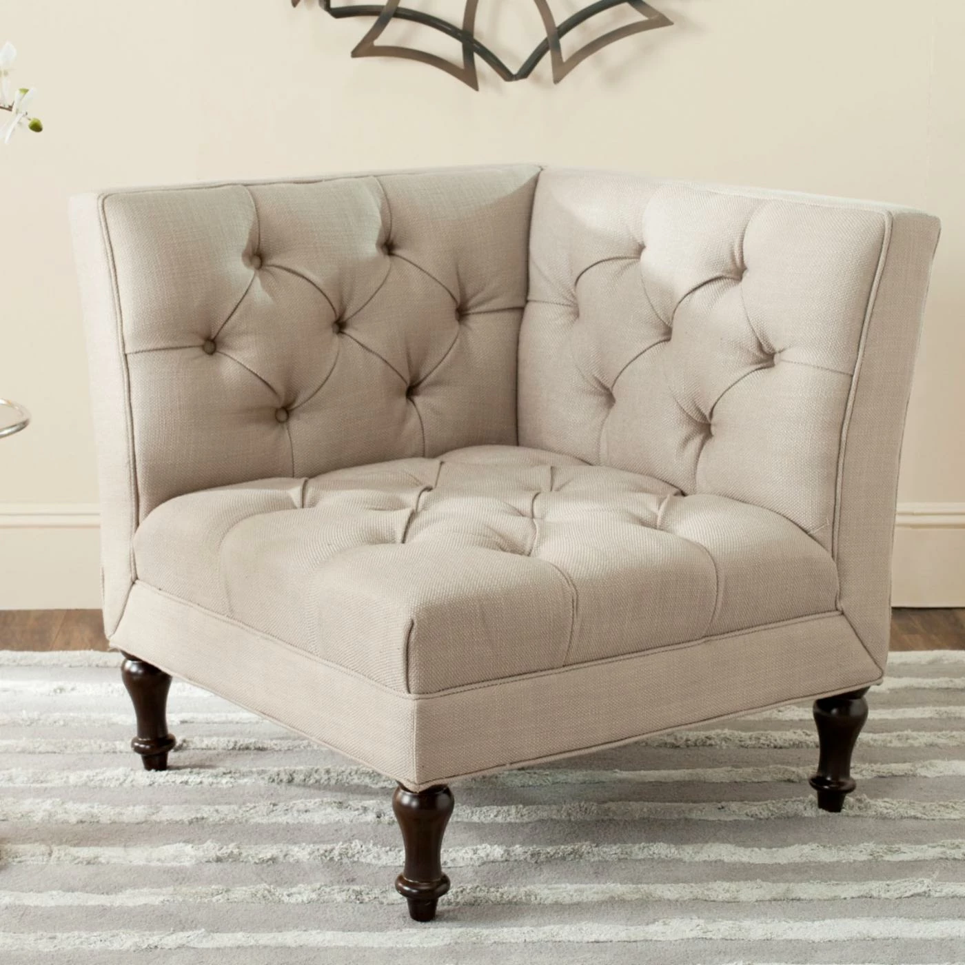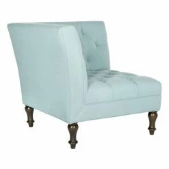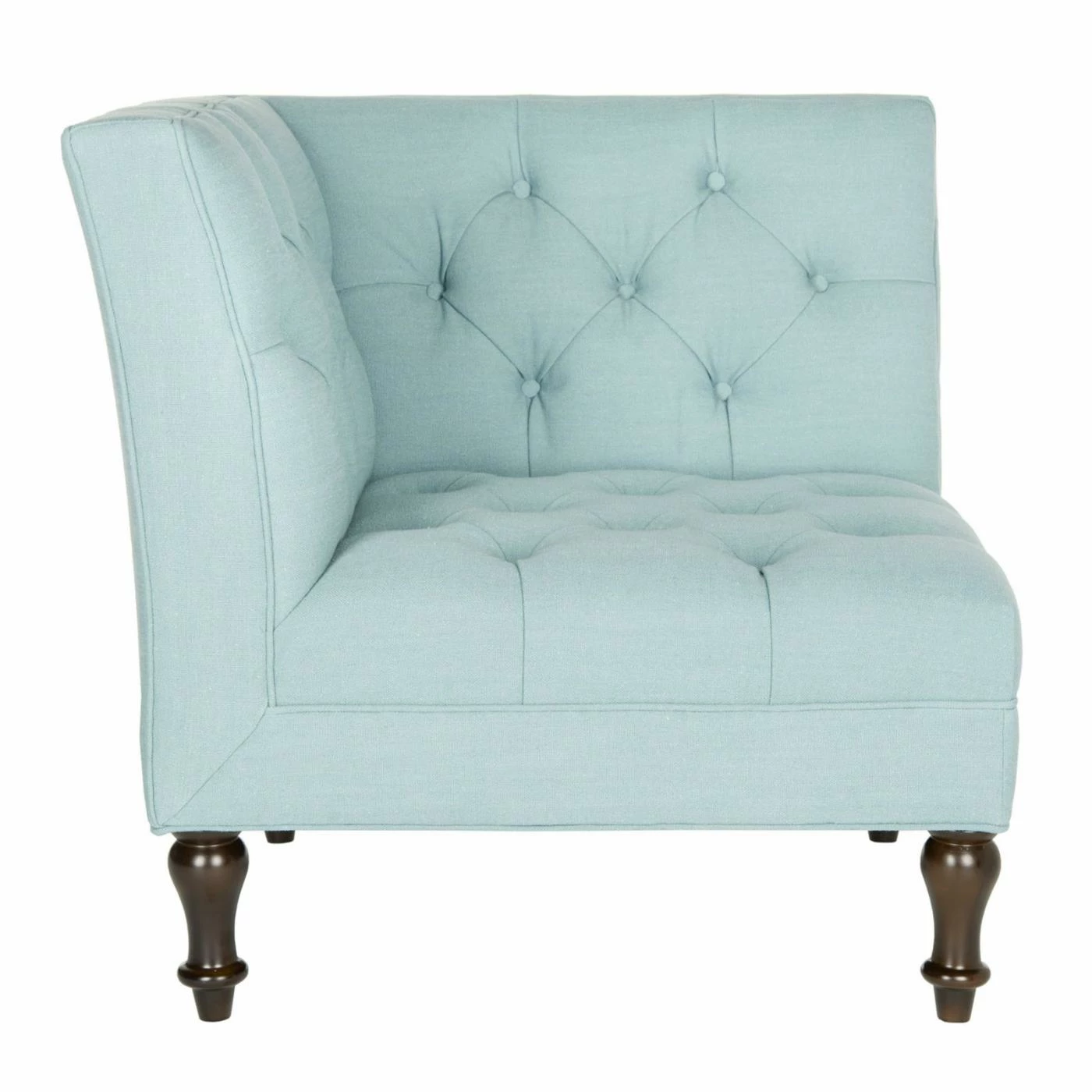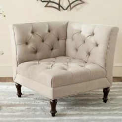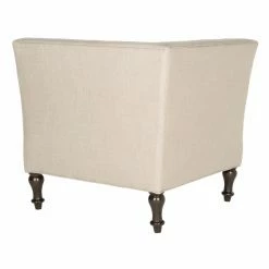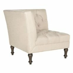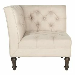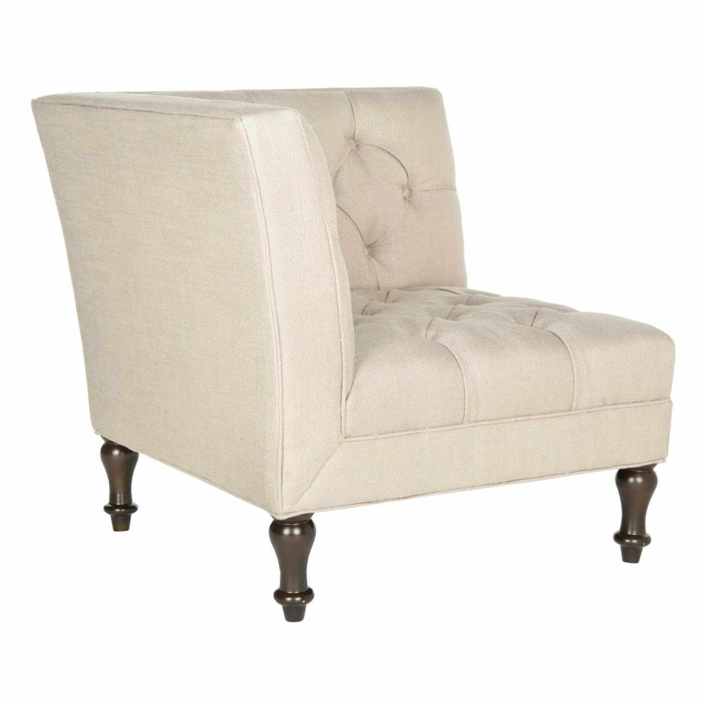 Snuggle the Safavieh Jack Club Chair into any corner to create a space-saving, contemporary take on the classic loveseat. This cozy corner chair gets a double dose of romantic flair from its deep button tufting on its two backs. Turned legs in espresso-finished birch wood and your choice of linen-polyester upholstery color complete the look.