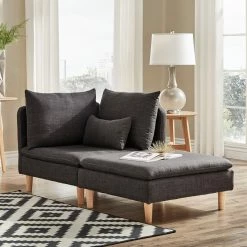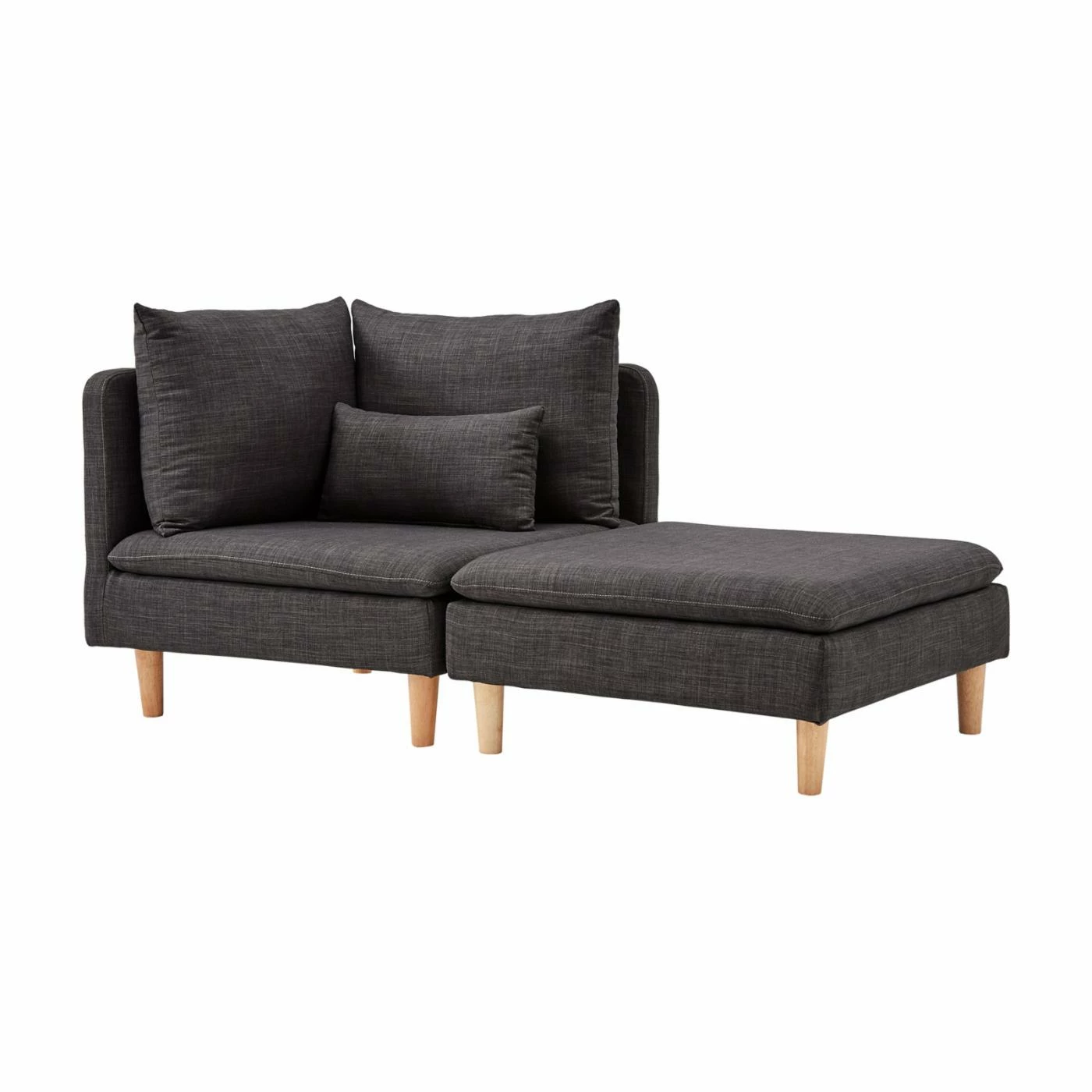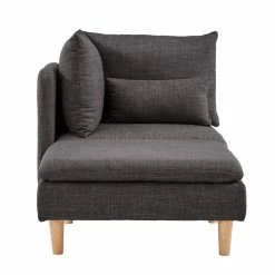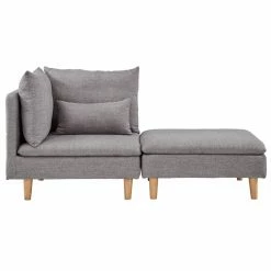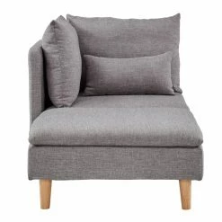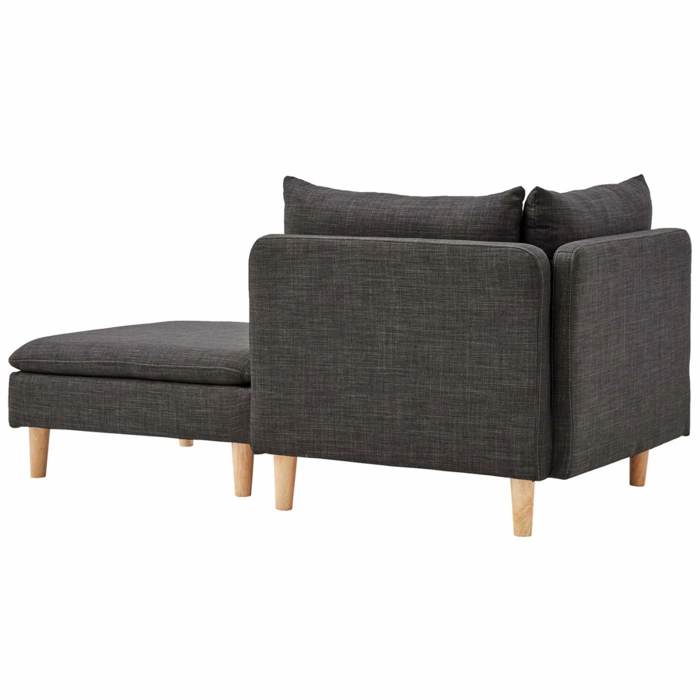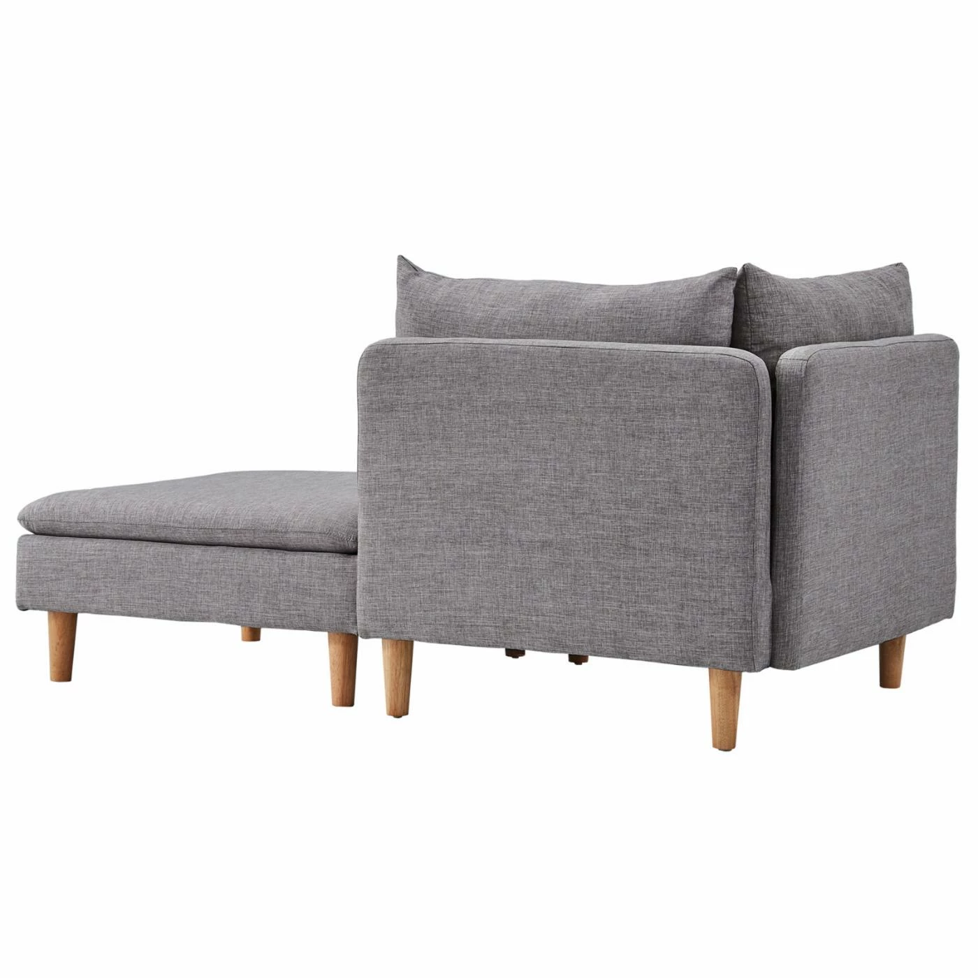Enjoy the look and comfort of a chaise lounge with the gray Weston Home Castleberry Modern Style Chair with Ottoman. This wood-framed furniture is designed with boxy shaping and comfy foam-filled cushioning. The corner chair has removable back cushions and a throw pillow that provide extra softness when it’s time to relax. Plus, the chair and ottoman are supported by tapered peg legs with a natural wood finish.