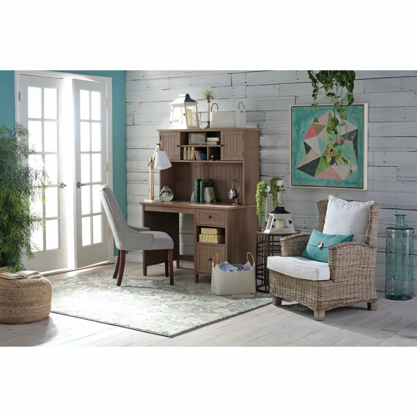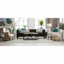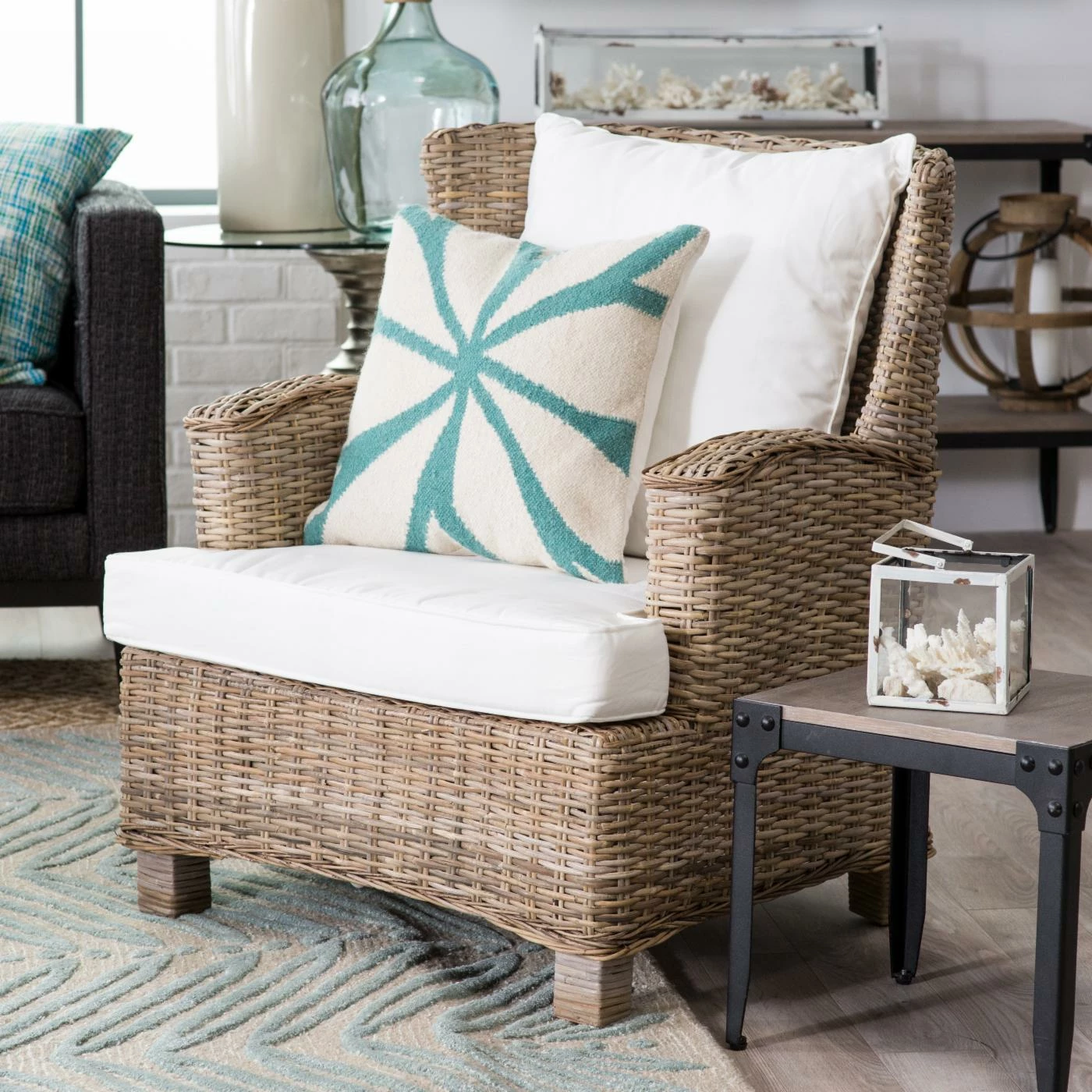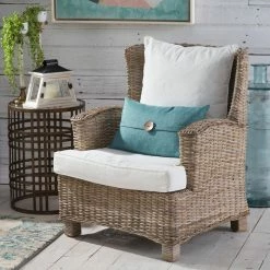 The Oasis Club Chair features a low-to-the-ground design and an island-living style that makes it perfect for weekend lounging. This charming little club chair features a lightweight, sturdy construction thanks to its frame made from hand-woven Kubu rattan, giving the piece a weathered, faded appearance emphasized by its natural finish. Curved armrests and straight back provide excellent support, while the white fabric-upholstered seat cushion and matching pillow provided plush comfort.