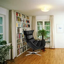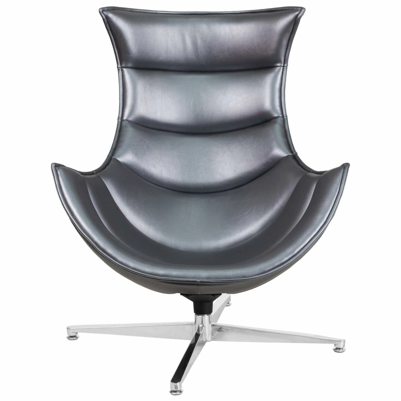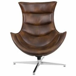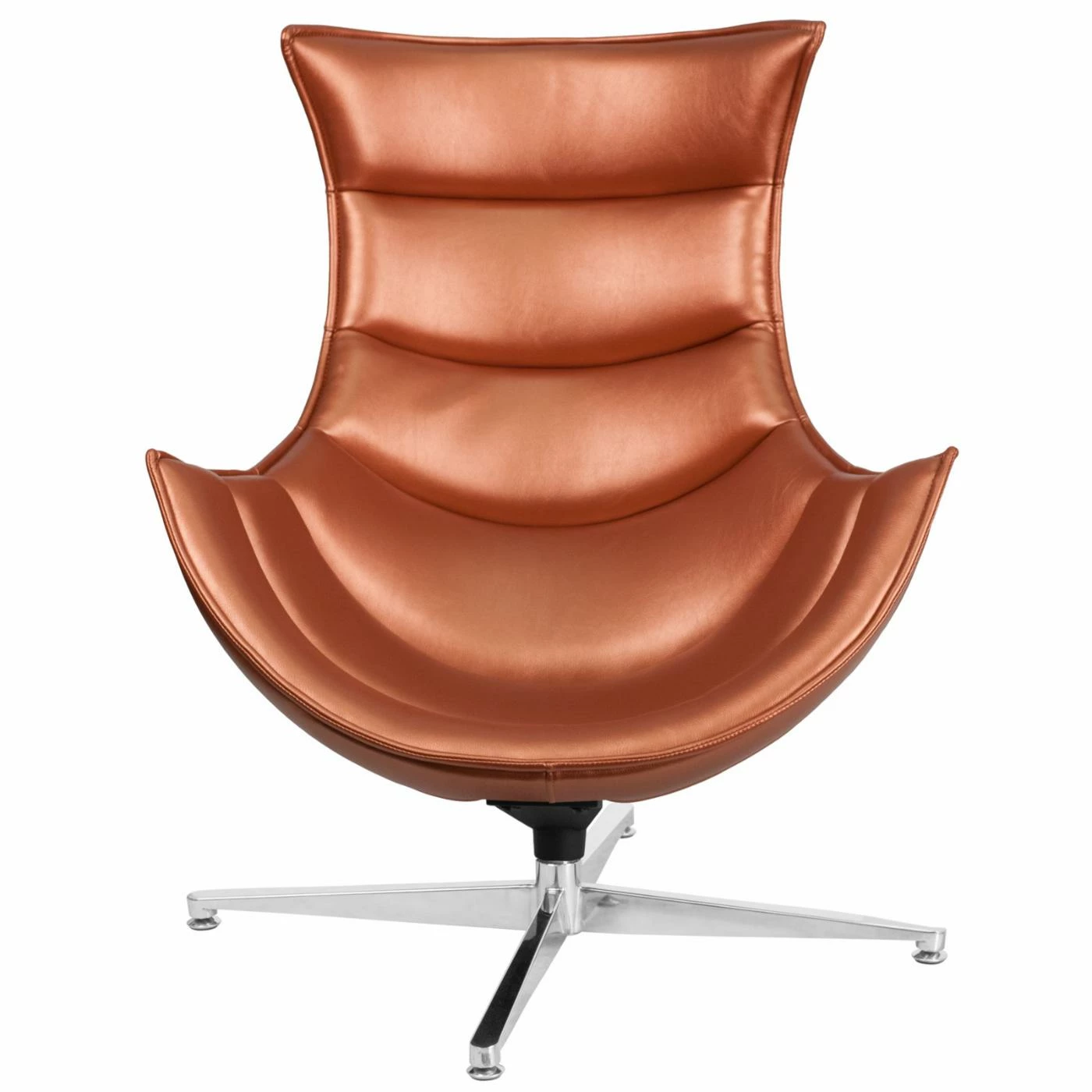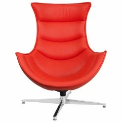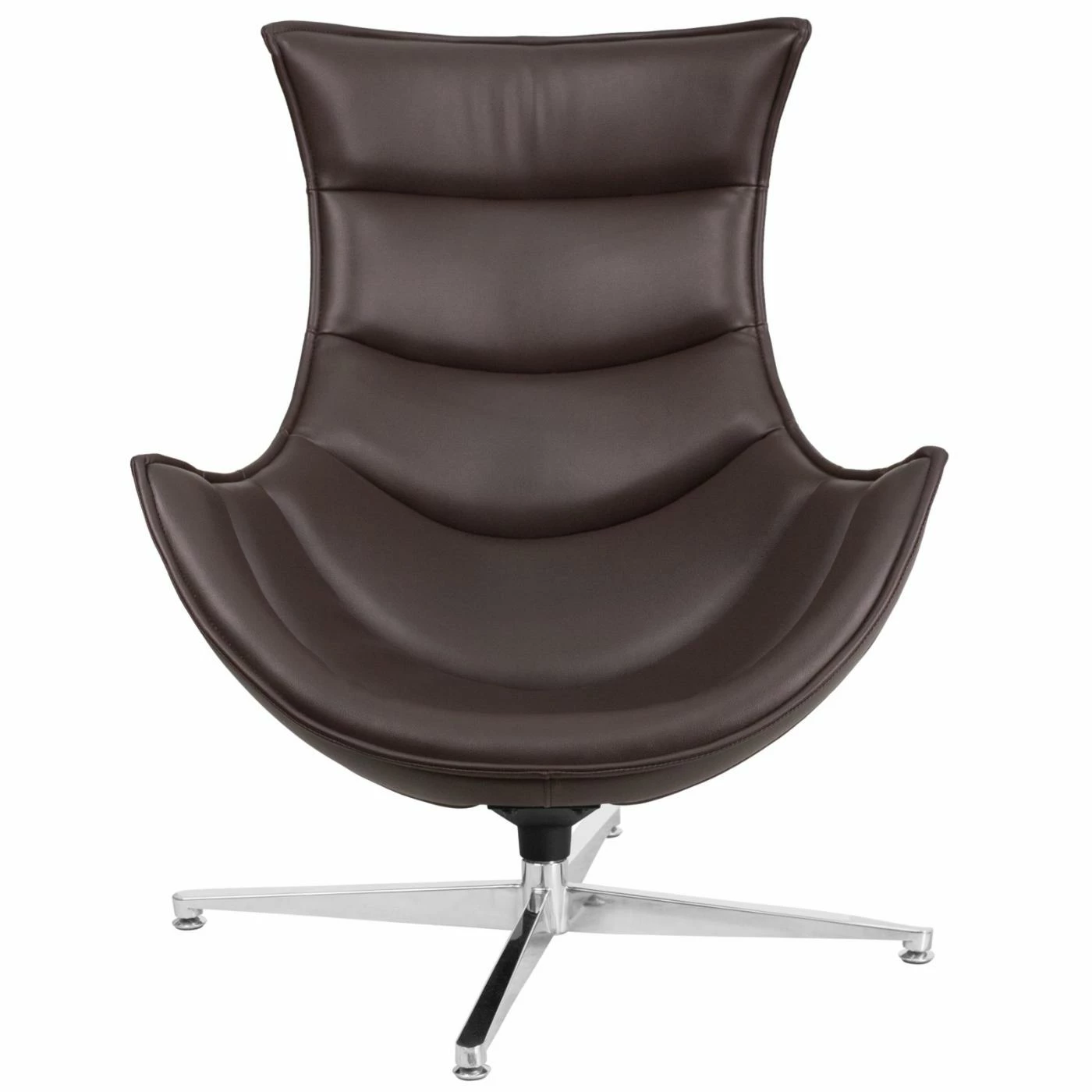 The bold, curved design and stitched detail in the leather upholstery gives the Flash Furniture Leather Swivel Cocoon Chair with Curved Arms a stand-out sense of style. Crafted from stainless steel with a chrome finish, the frame is durable and refreshingly modern. With its swivel feature, the cocoon chair lets you reach everything you need while remaining reclined in comfort.