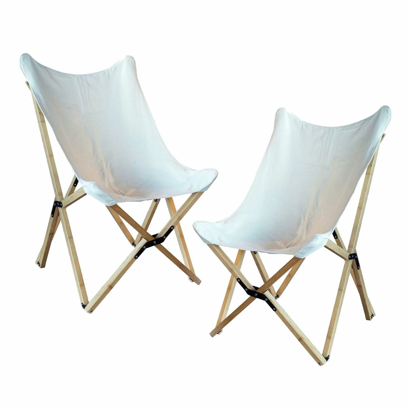 A classic chair gets a modern redesign with the AmeriHome Canvas and Bamboo Butterfly Accent Chair – Set of 2. A modern and elegant take on an old favorite, this Sling Chair has a woven canvas cover, that is durable and lightweight. A strong and elegant bamboo frame folds and unfolds, so the only assembly required in to slip-on the cover. The simple design is famous for its functionality, striking style, and portability, and will make an attractive accent chair to the living room, den, basement or bedroom. The fold-up design makes these chairs a great alternative to typical camping chairs, or extra guest seating.