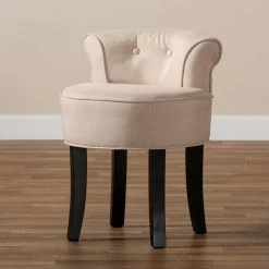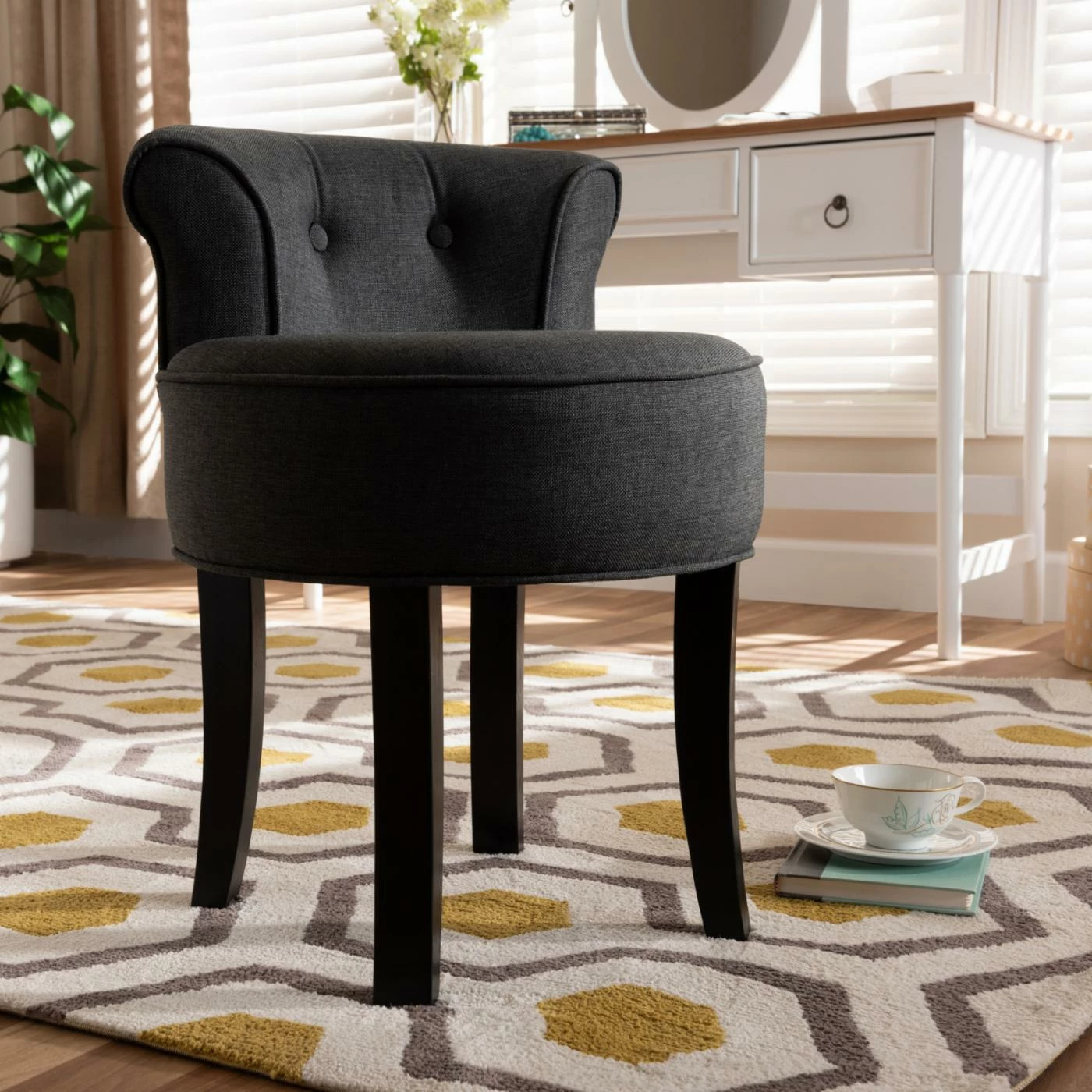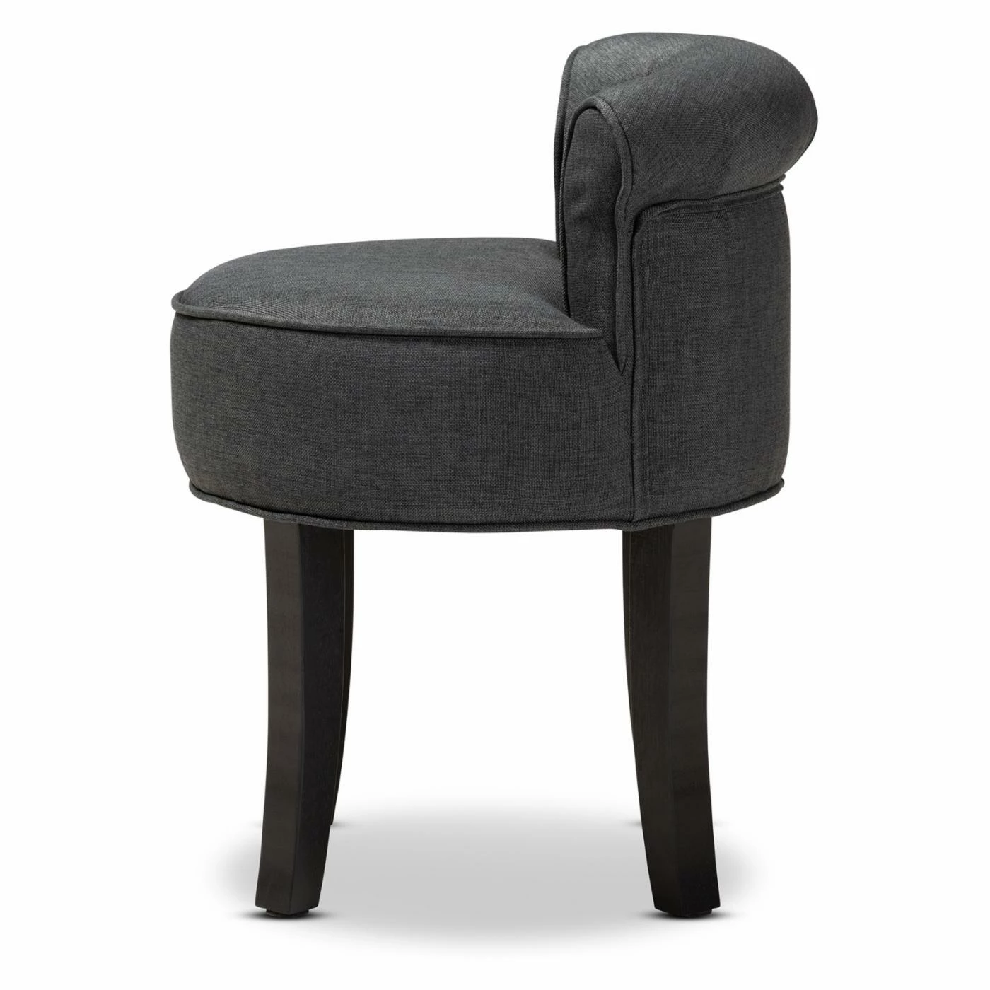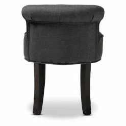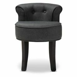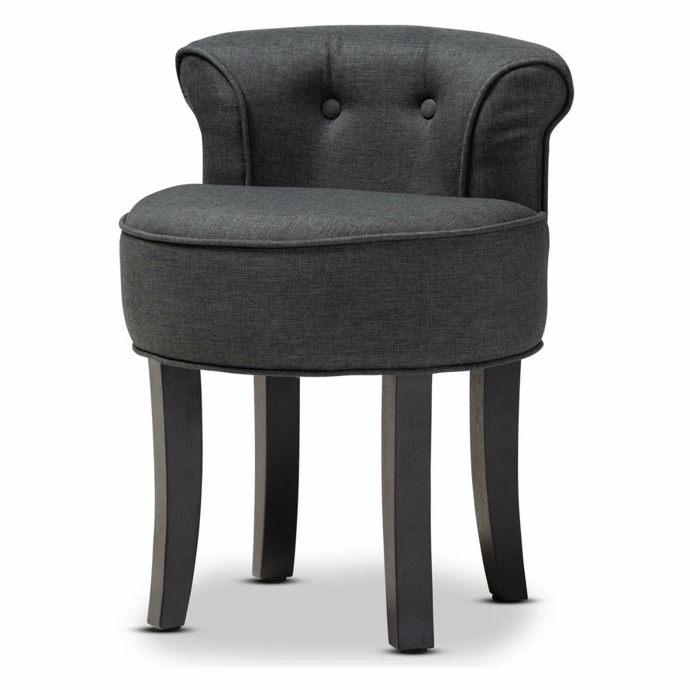 Theย Baxton Studio Cerise Tufted Accent Chair may seem a little understated, but this accent chair delivers big style. The low profile, traditional scroll back features button accents, while 100% polyester upholstery is finished with classic rolled seams. The sturdy MDF and eucalpytus wood frame stands on black turned legs. Choose your favorite color to match your space.