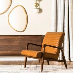 A signature piece for your stylish space, the Poly & Bark Rowan Lounge Chair exudes modern luxury with unique ribbed seat texture and shapely frame. The solid ash wood frame is kiln-dried to prevent warping and features a rich walnut finish. It wraps around the high-density foam cushions, creating artful angles and curves from arms to tapered legs. Itโs crafted with leather upholstery, which is preferred globally for the hideโs natural markings and creases, plus its ability to take on scuffs, patinating nicely with use. This chic lounge chair promises to evolve along with your tastes over time.