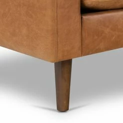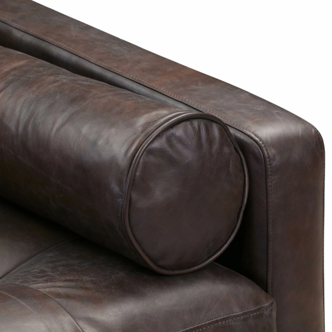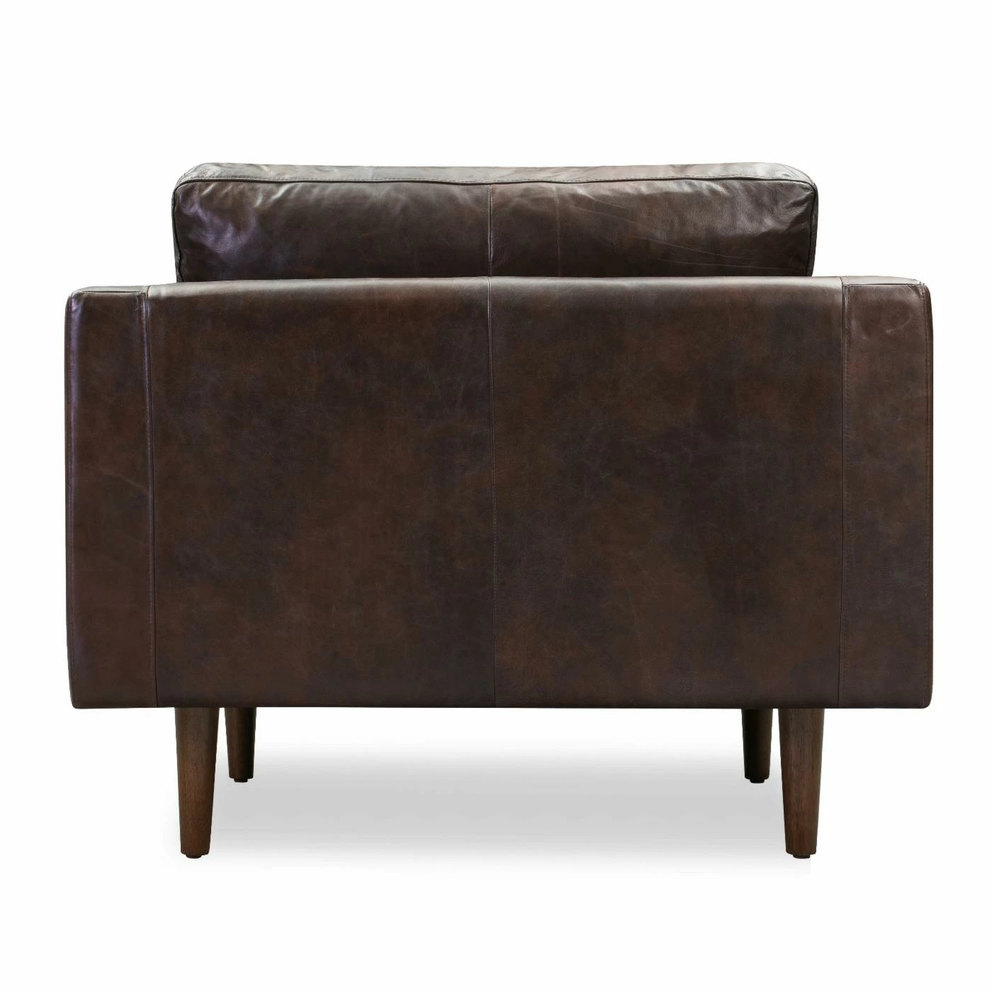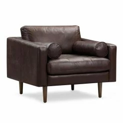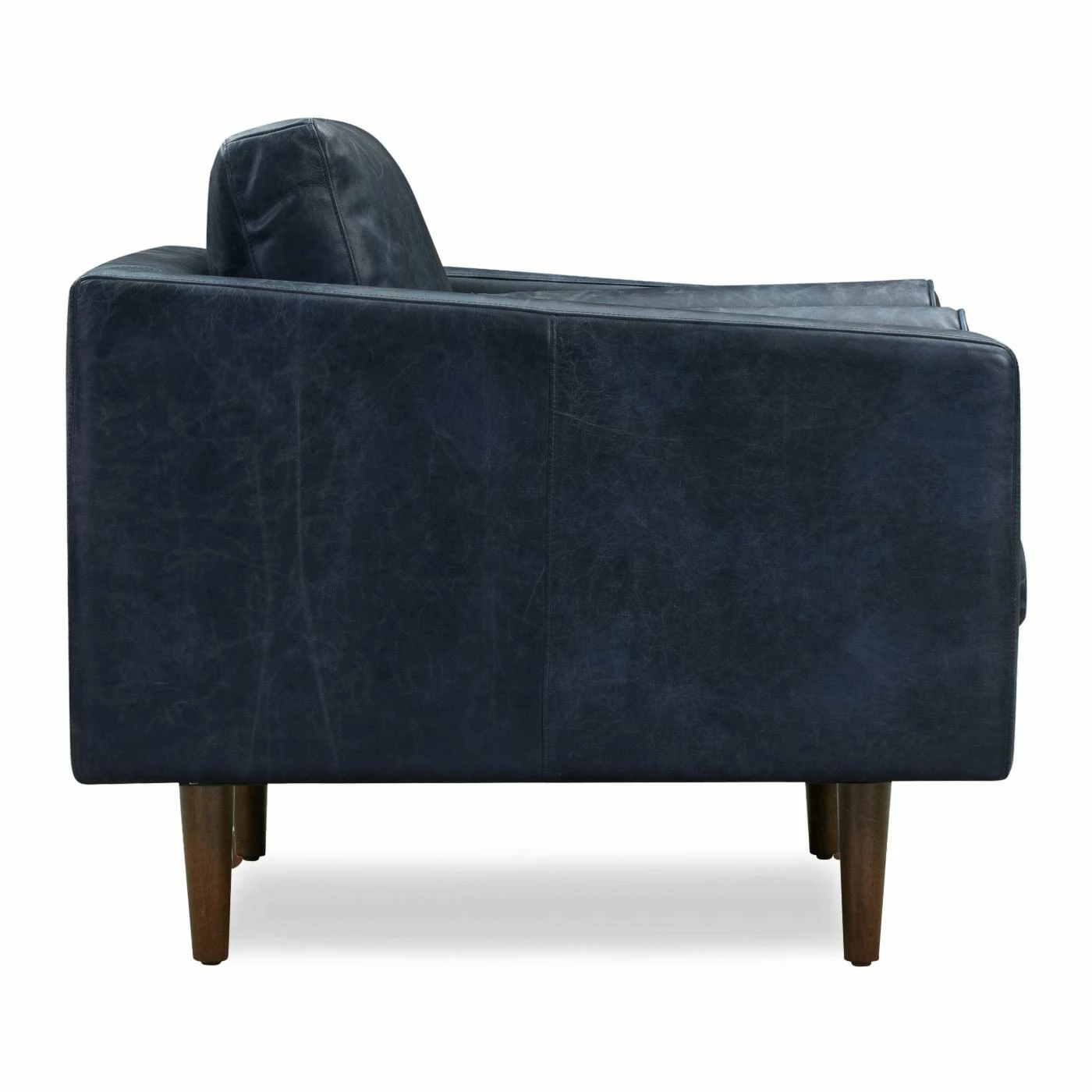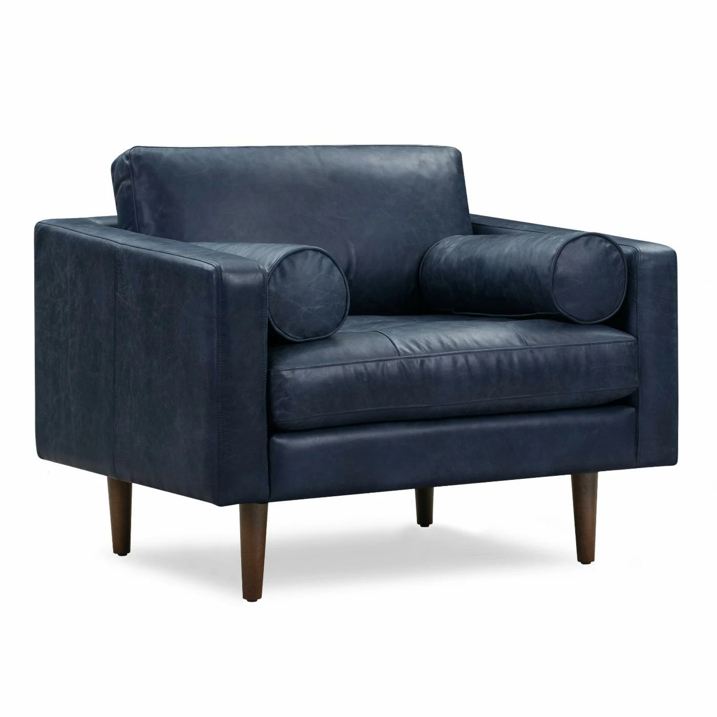Simply stunning in looks is the Poly & Bark Napa Leather Club Chair. Showing off incredible quality, the dyed leather is presented to accentuate the natural characteristics of each hide, ensuring a truly unique piece. With minimal processing, aniline hides proudly display the natural hallmarks of genuine leather such as fat wrinkles, growth marks, healed scars, insect bites and scratches. Similar to marble or a beautiful piece of timber, each leather will vary in color tone and pattern and will change, mark and stain, softening into its rich patina with age. A kiln-dried solid wood frame is corner-blocked and features reinforces joinery for optimal strength and lasting beauty. Designed both for style and beauty, the chair features Pirelli webbing to support its seat and back, with high density foam over polyester filling to provide just the right amount of support. Duck feather down adds appealing softness and a pair of loose bolsters are included, providing classic style and added support as desired.