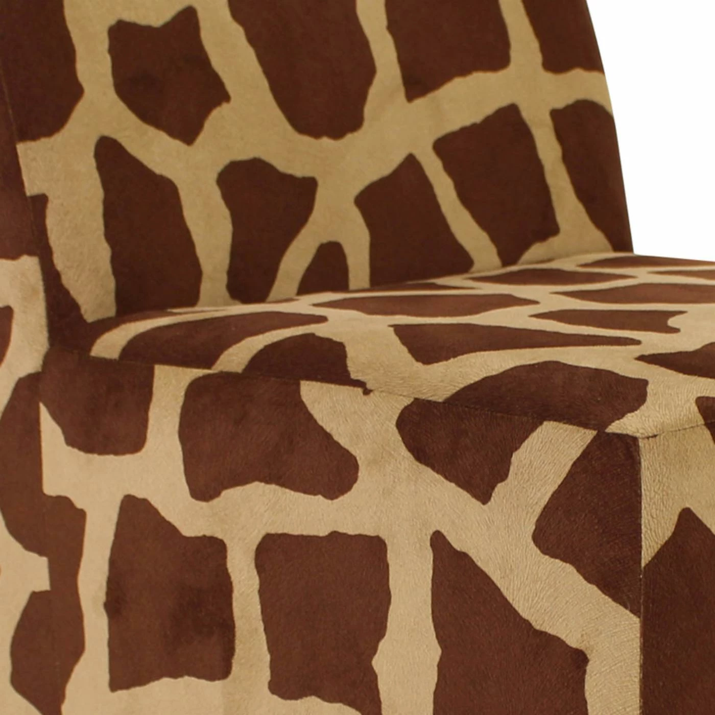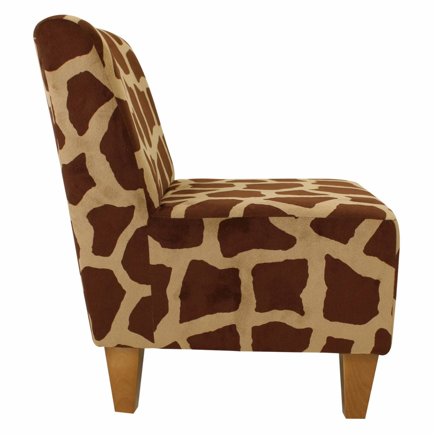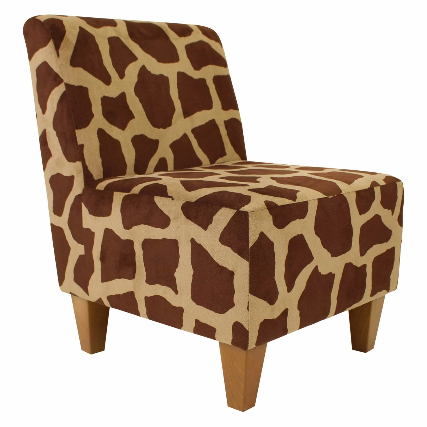 The Fox Hill Penelope Giraffe Print Armless Slipper Chair brings a touch of glamorous giraffe print into your bedroom, den, or living room. Itβs the ultimate accent chair and features sturdy tapered legs. Designed and crafted in the USA.