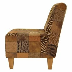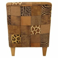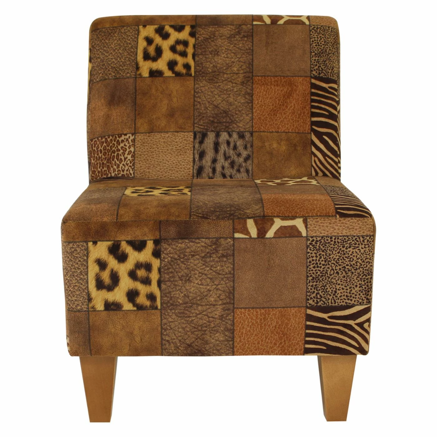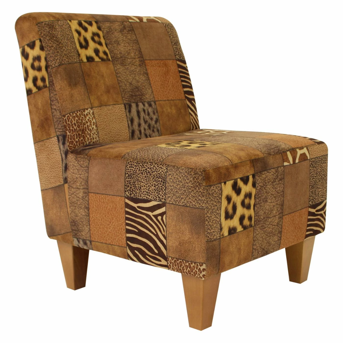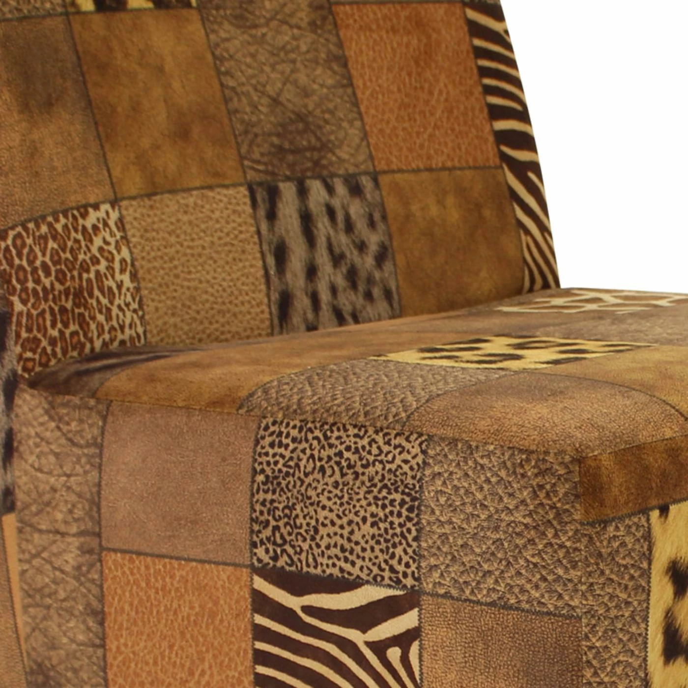 With a patchwork of tantalizing textures, the Fox Hill Penelope Patchwork Animal Print Armless Slipper Chair brings photo-realistic swatches of animal print into your space. Prints include leopard spots, zebra stripes, and luscious brown hides. No animals were harmed! Made in the USA.