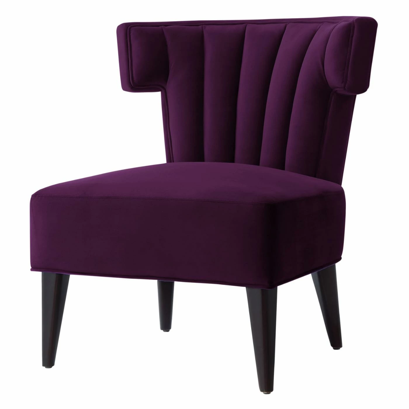 With a sleek wingback design, the Nicole Miller Payton Velvet Accent Chair takes traditional elements and integrates them into bold, glam style. The accent chair features velvet upholstery in your choice of available color and channel tufting for lush texture. Tapered wood feet have an espresso finish and add a touch of mid-century appeal.