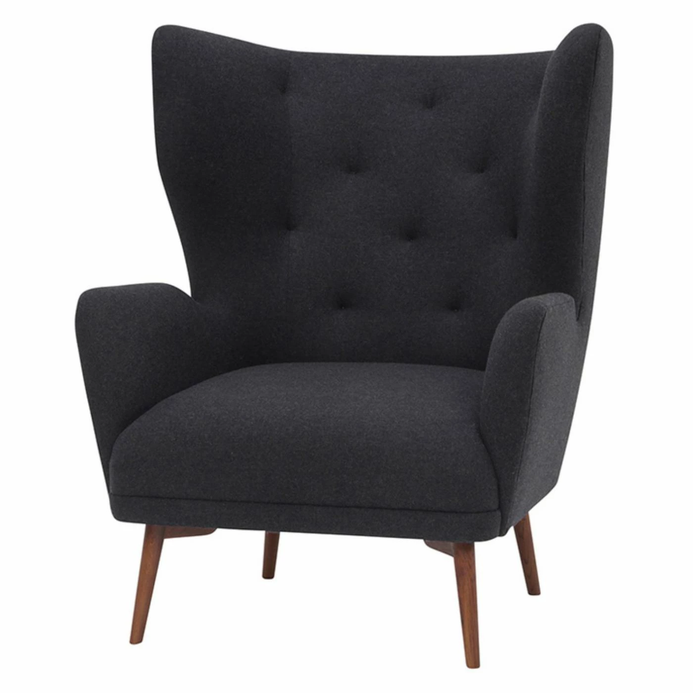 The Nuevo Klara Tufted Wingback Arm Chair takes a contemporary design and gives it real presence. With its high, tufted wingback, foam cushion seat, and upholstered arms, this chair gives you all the support and comfort you need to settle in and enjoy your evening. The elegant seat is perched atop four tapered wood legs, and the back legs are slightly shorter to create a relaxing reclined effect. Your choice of fabric upholstery allows you to select the hue that best enhances your dΓ©cor.