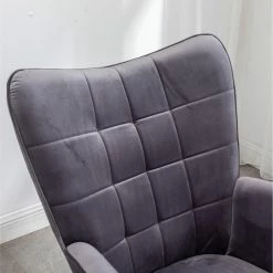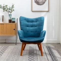 Button-tufted accents make the Roundhill Furniture Leiria Velvet Tufted Accent Chair with Ottoman. Tapering wood dowel legs add mid-century flair. Settle into the generous wingback design to appreciate this chair’s smart, welted arms and its matching ottoman. This set includes a lounge chair and matching ottoman. Oak finished legs. Plump foam pads the seat and ottoman top, upholstered in premium soft velvet fabric and diamond-tufted. Choose among available fabric options.