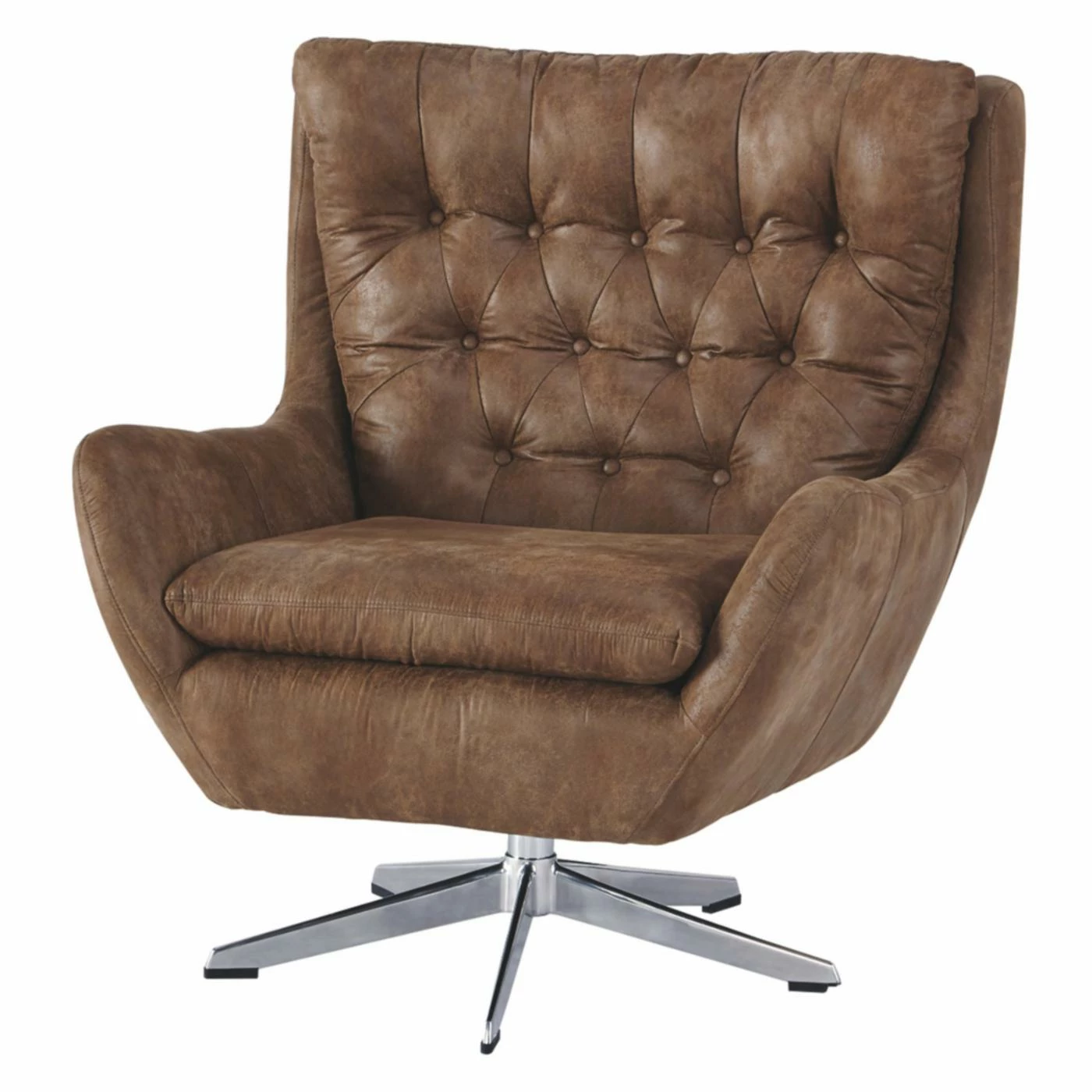Enjoy ultimate relaxation with the help of the Signature Design by Ashley Velburg Accent Chair. This chair offers dramatic, flared style lines. the attached cushion offer plush construction and button tufted details.