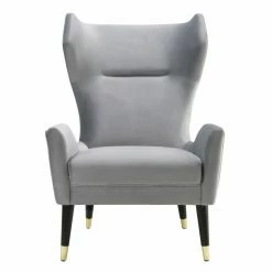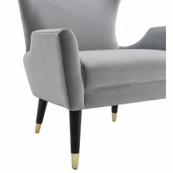 The TOV Furniture Logan Grey Velvet Chair is a perfect piece to inspire the personality of your decor. This minimalist wingback chair has a stunning Mid-century design, featuring tapered, conical legs made from beech wood with metal footcaps. For padding, the piece is wrapped in a flame-retardant, plush foam. Upholstering the seat of the Logan chair is a rich velvet fabric in your choice of available color option.
